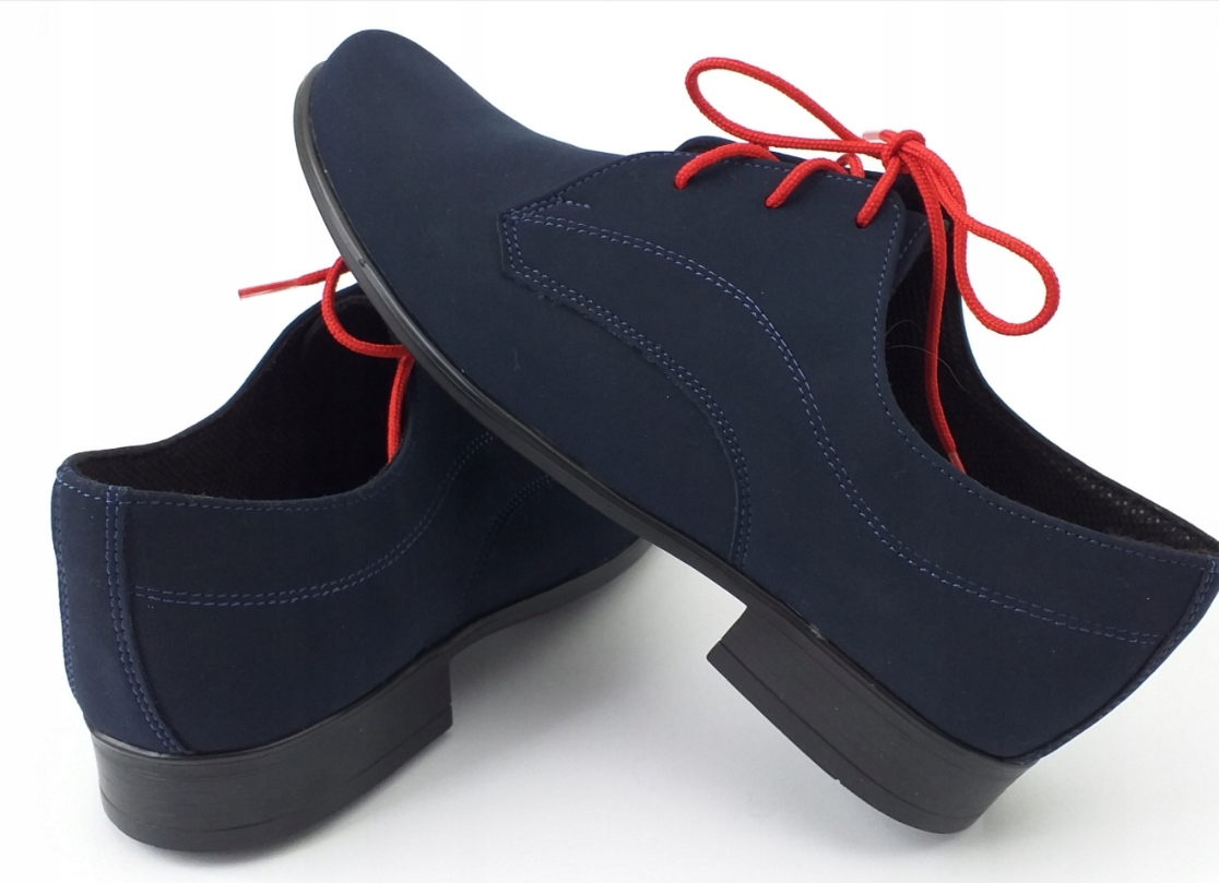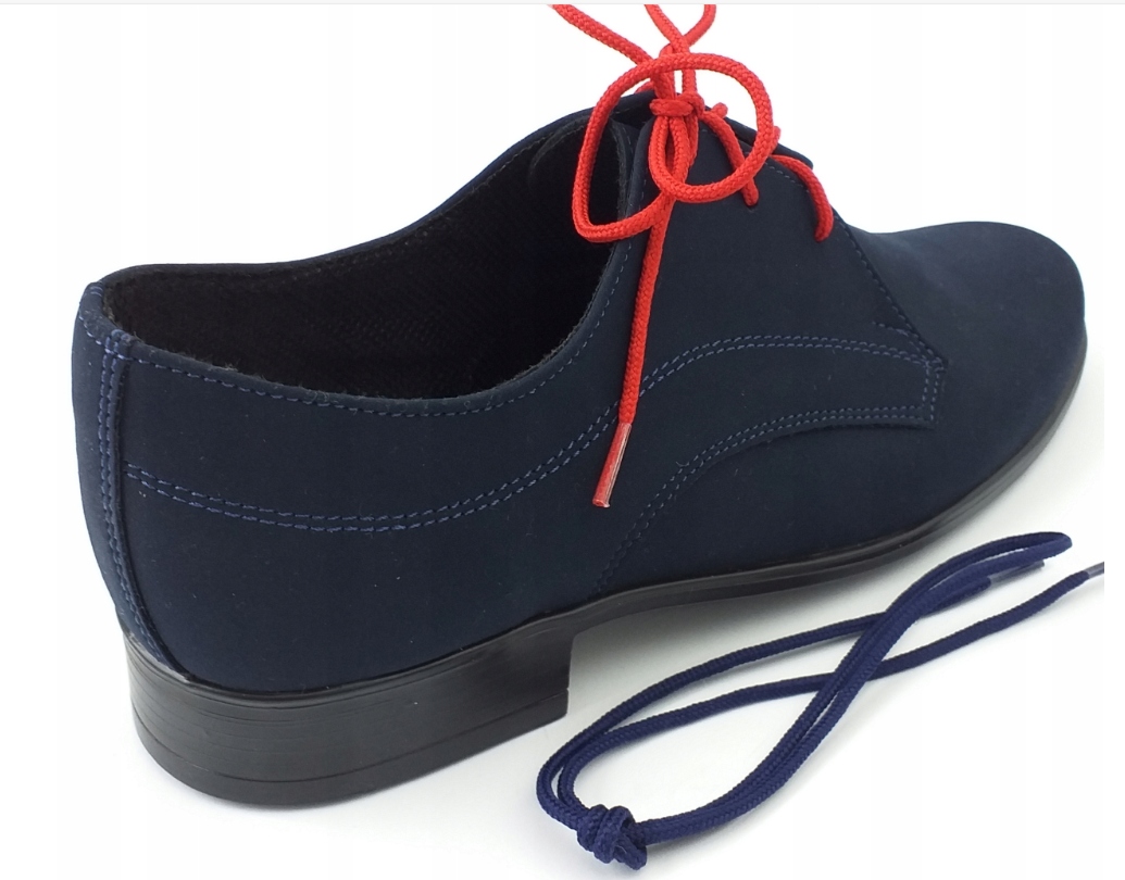 Очень элегантные темно-синие туфли для причастия для мальчика от польского производителя обуви MIKO. Изготовлен из мягкого нубука, стелька из натуральной кожи. Туфли на шнуровке, к туфлям прикреплены шнурки темно-синего и красного цвета. Легкое закругление спереди.