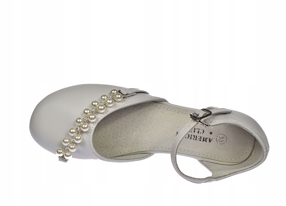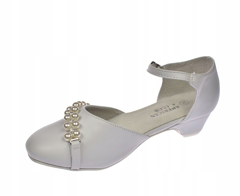 Белые балетки для девочек на высоком каблуке, застегиваются на ремень, бренд American Club