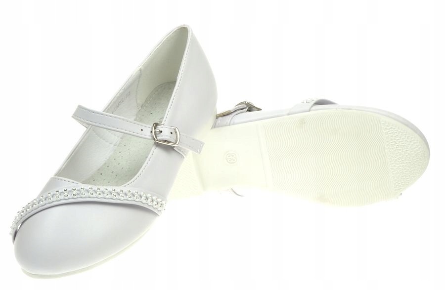 Официальная модель белой обуви для девочек - тапочки - идеальна для первого причастия и других торжеств.