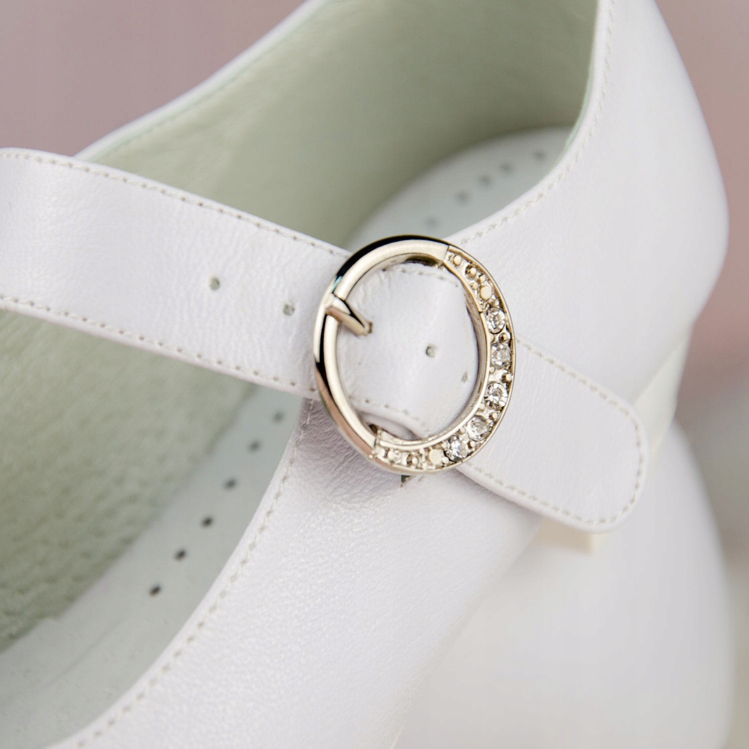Элегантные белые туфли для причастия для девочек. Обувь имеет правильную форму, что делает ее очень удобной. Кроме того, спереди имеется ремень для лучшей поддержки стопы. Модель на тонком каблуке высотой 2,5 см, белого цвета. Бантик на передней части верха добавляет шарма. Внешняя часть обуви изготовлена из экологической кожи, а стелька – из натуральной кожи. Классические балетки идеально подходят как для Первого причастия, так и для других торжеств.