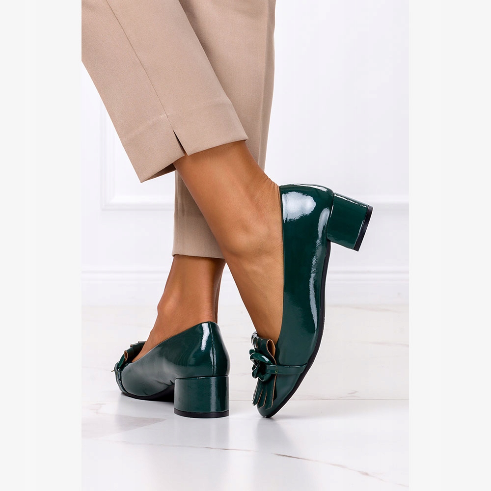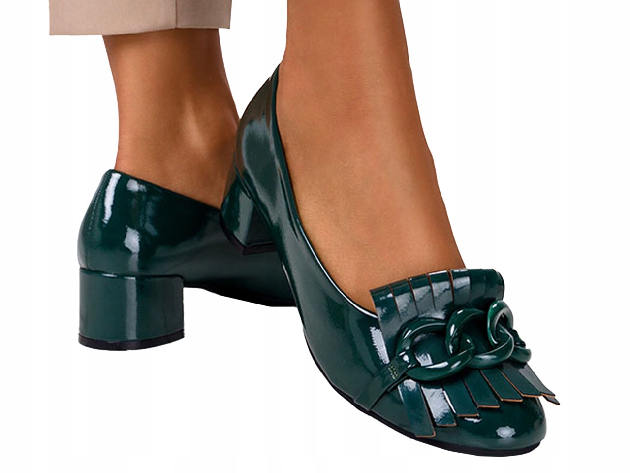 Зеленые лаковые лоферы на цепочке на низком каблуке с кожаной стелькой Casu ER22WX3-G