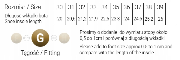 При выборе размера обуви учитывайте длину стельки. Все длины вставок указаны в таблице ниже.
