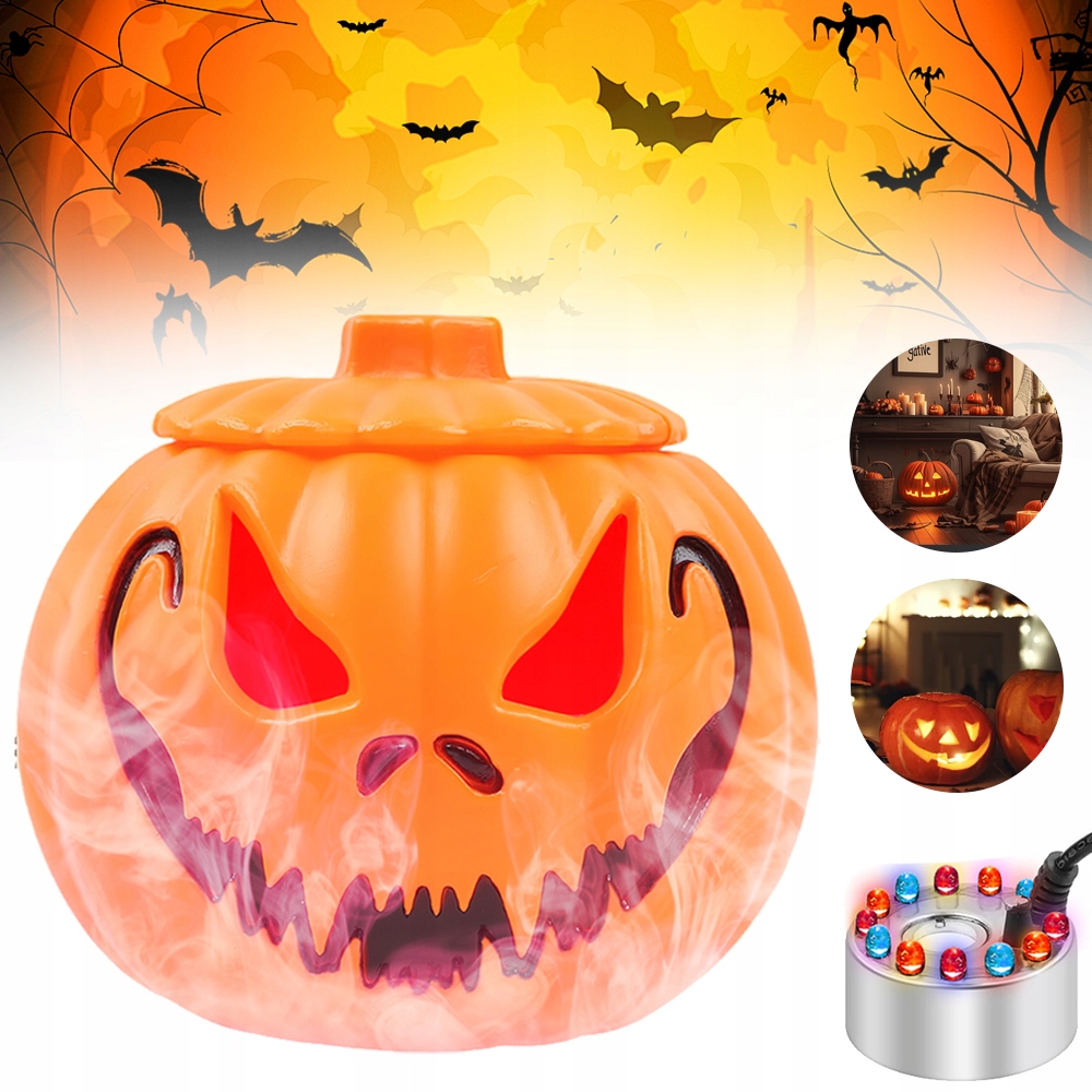 🎃 Хэллоуинская тыква с туманогенератором — Алюминиевый распылитель с 12 светодиодами, меняющими цвет, светодиодные фонари меняют цвет случайным образом. Их четыре. виды огней: синий, желтый, красный и фиолетовый, цвета яркие и привлекают внимание в ночное время.