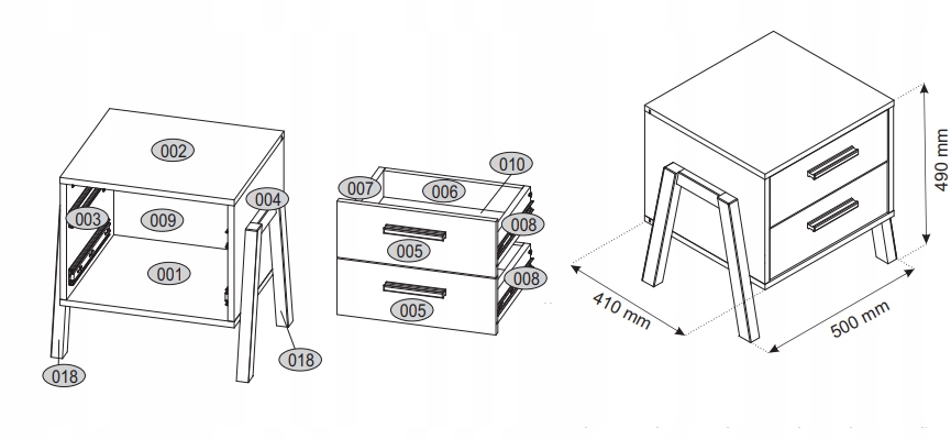 Прикроватная тумбочка 2с BELLE белый+дерево