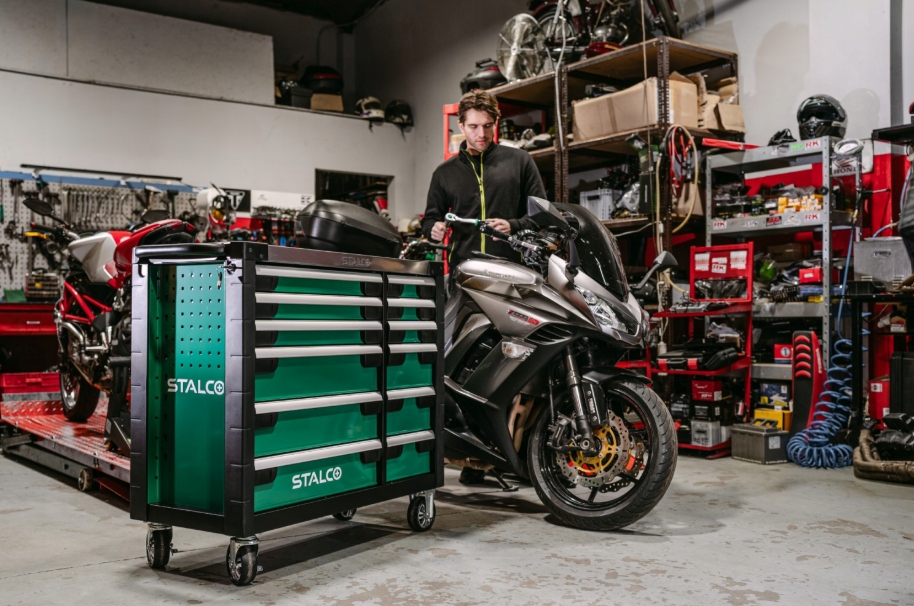 Профессиональная организация и максимальная долговечность! Шкаф инструментальный STALCO S026300012 – незаменимое оборудование для каждой мастерской, сервисного центра и гаража. Благодаря 12 выдвижным ящикам разной вместимости, прочной конструкции и столешнице, покрытой нержавеющей сталью, она обеспечивает идеальную организацию инструментов и долговечность на долгие годы.