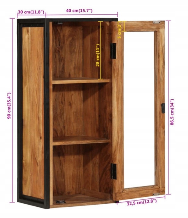 Шкаф для ванной комнаты, настенный, 40x30x90см, дерево акации и железо VidaXL