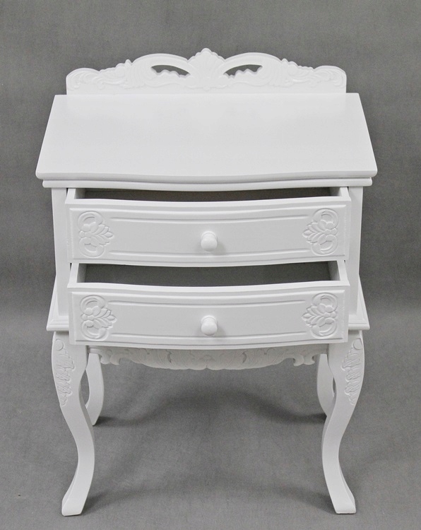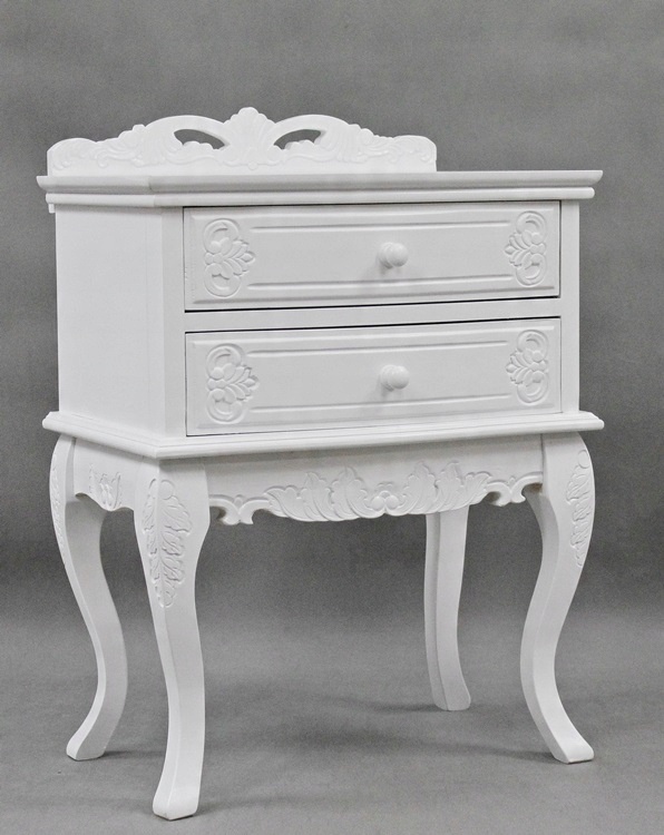 Очаровательный предмет мебели с двумя ящиками и красивой резьбой.