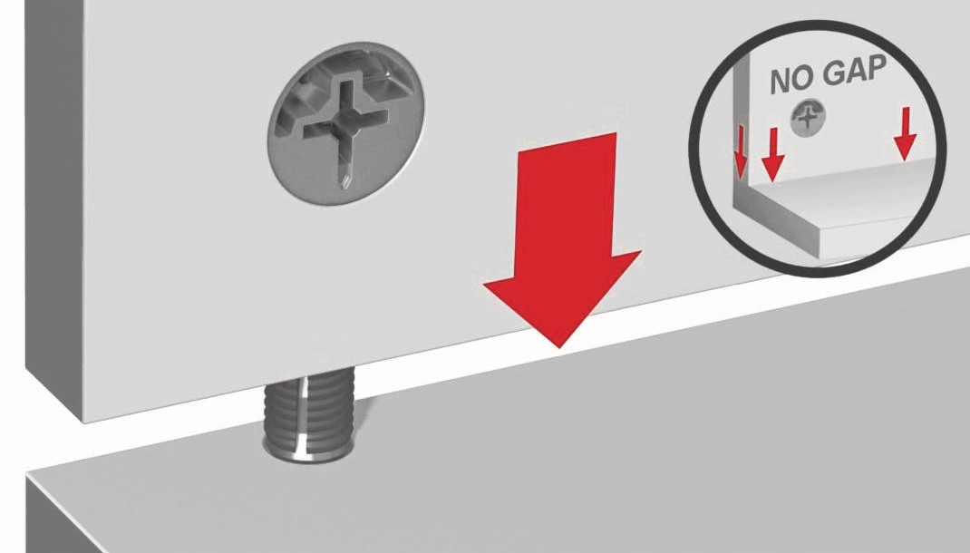 Конструктивные соединения стойки выполнены с помощью эксцентриков – благодаря чему соединения элементов скрыты внутри мебели.
