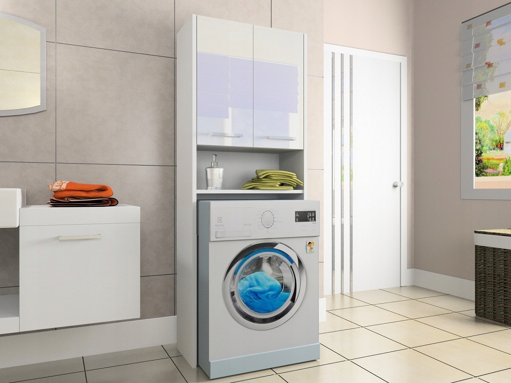 Шкафчик для ванной комнаты PRIMO над стиральной машиной, 64 см, белый глянец