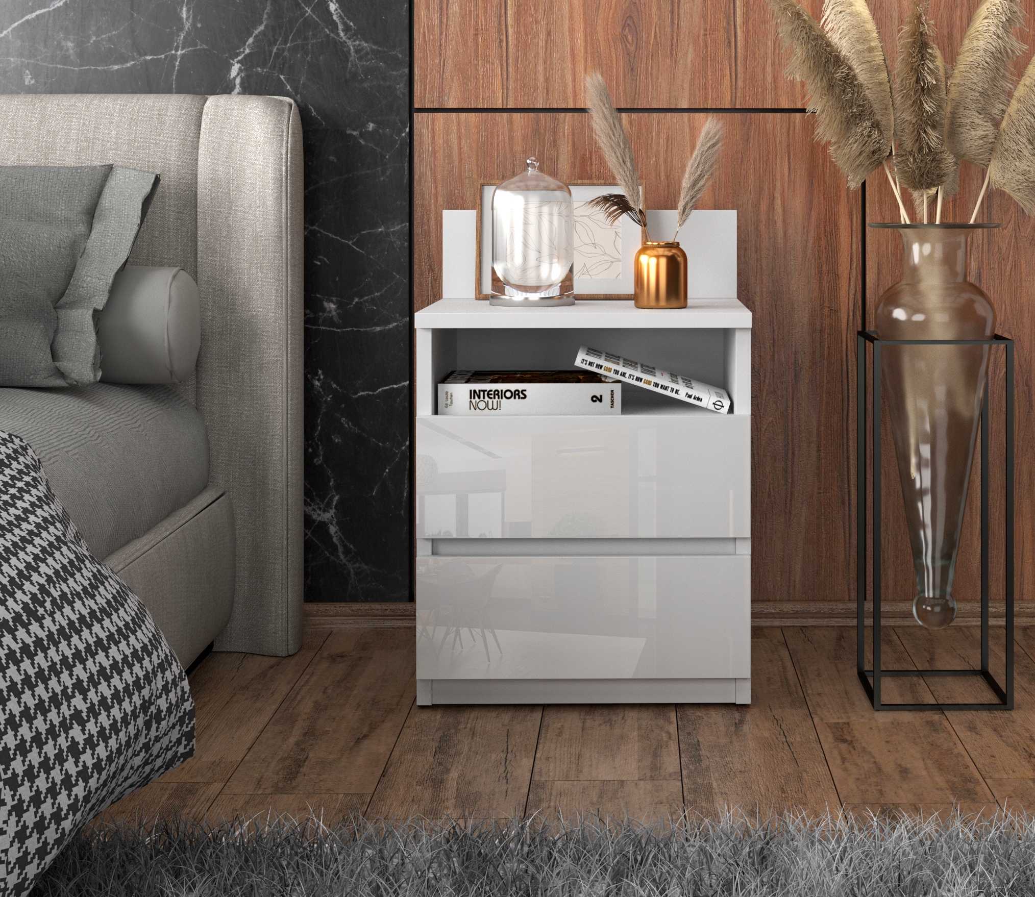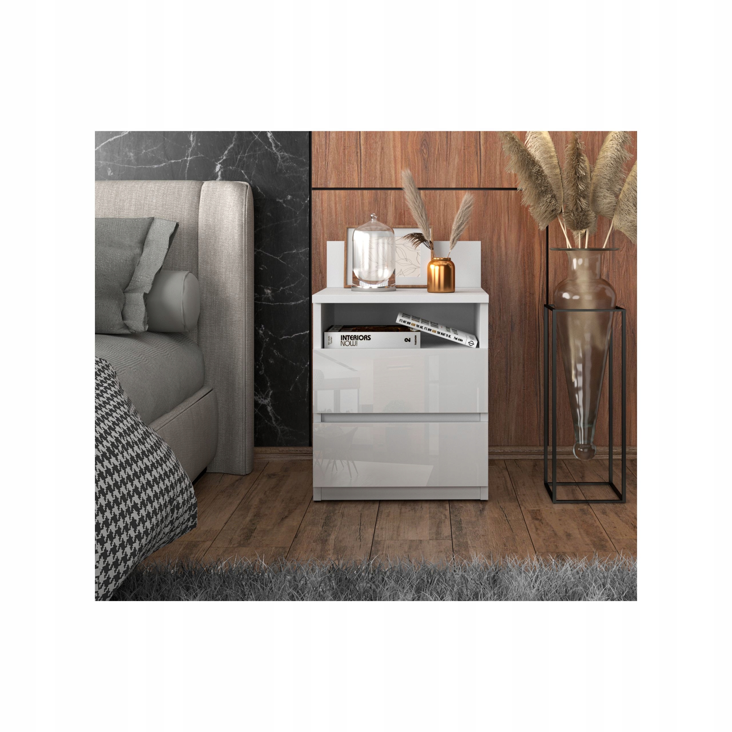 Тумбочка Біла Глянцева Тумбочка 40CM 2S Полиця Лофт Меблі для Спальні