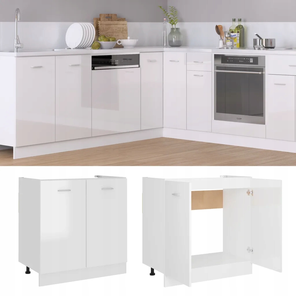 Шкаф под раковину, глянцевый, белый, 80х46х81,5 см, плита