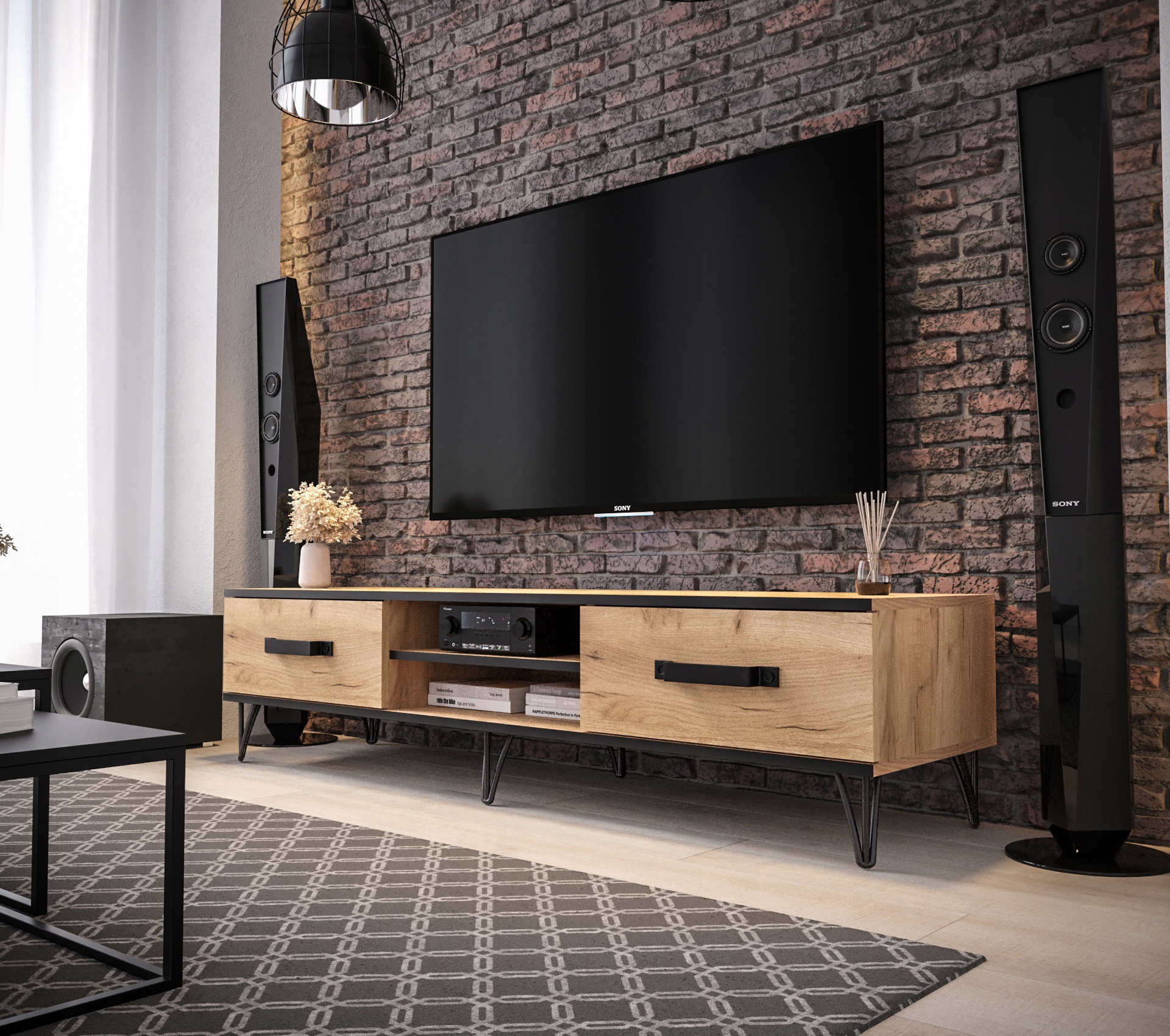 Шкаф MONDI TV – предмет мебели, выполненный в современном индустриальном стиле. Конструкция, установленная на высоких ножках, придает мебели функциональность и стиль. Тумба под телевизор разместится как в гостиной, так и в гостиной.
