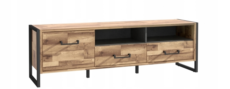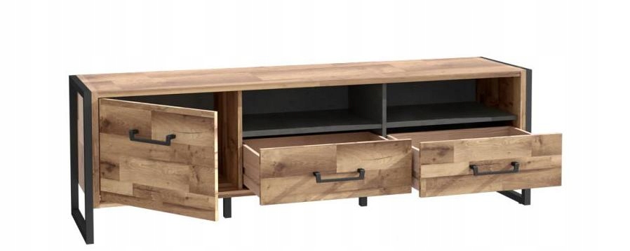 Телевизионный шкаф HUD HUDT131 – это универсальный предмет мебели, который послужит не только элементом RTV-приставки, но и прекрасно впишется в любое помещение. Шкаф состоит из двух практичных ящиков и тумбы с фасадом для хранения мелких вещей, а также открытых полок, которые позволят удобно разместить ТВ-аппаратуру. Практичная столешница — идеальное место для телевизора и украшений. Ручки и ножки подчеркивают уникальный стиль коллекции HUD.