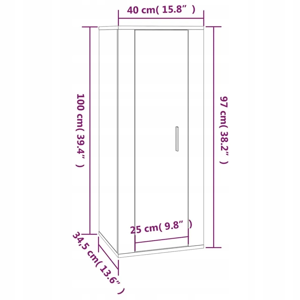 - 2 x тумба под телевизор: 40 x 34,5 x 100 см (Ш x Г x высота)