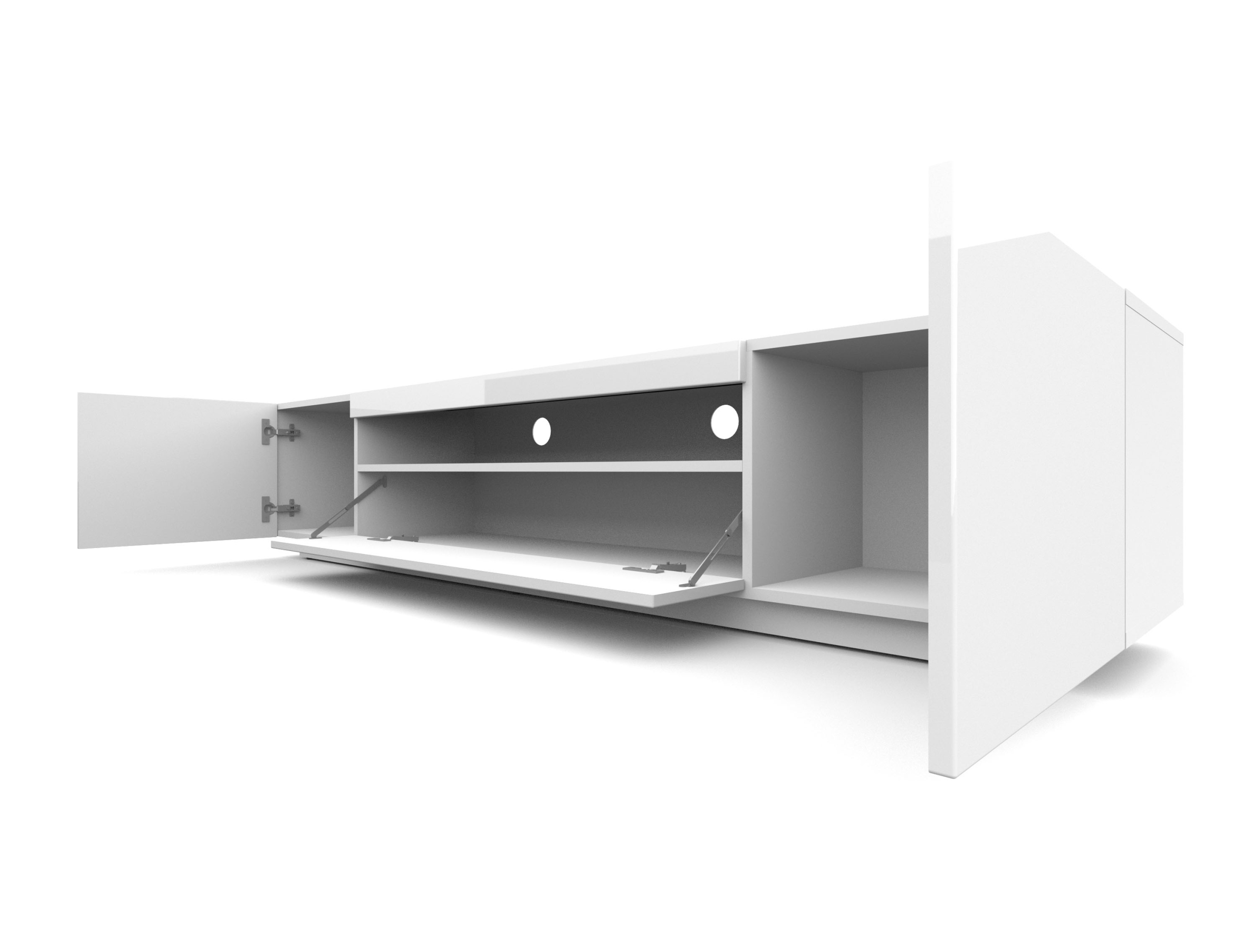 Тумба под телевизор 200 см, белый глянцевый + светодиодная подсветка
