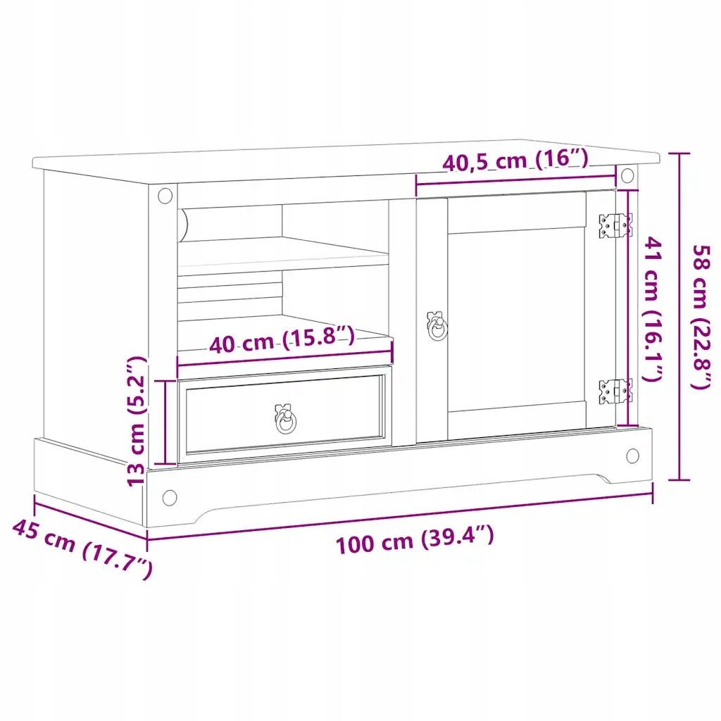 Шкаф для телевизора Corona, 100x45x58 см, сплошная сосна древесина