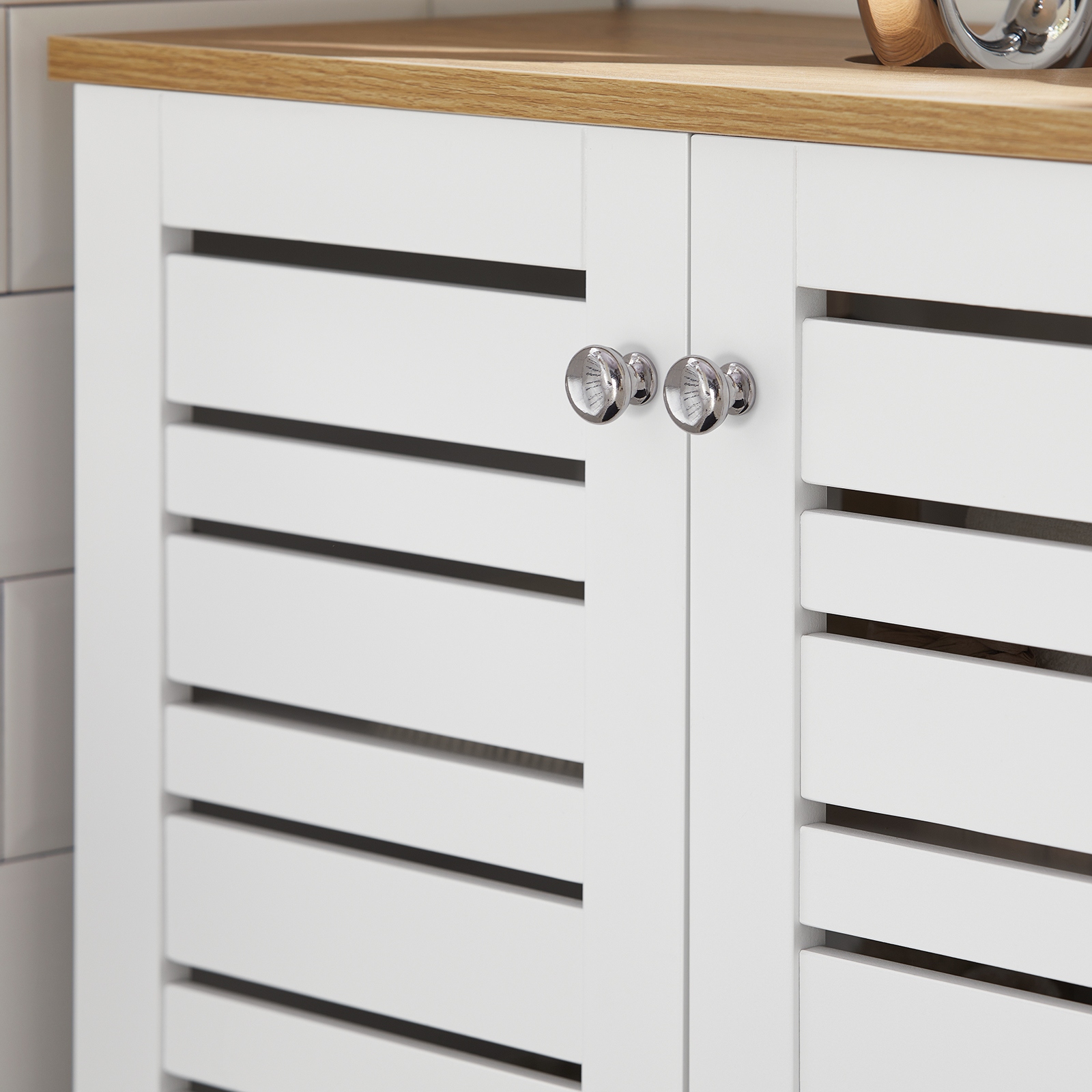 За двумя дверцами достаточно места для аккуратного и безопасного хранения средств по уходу и других аксессуаров.