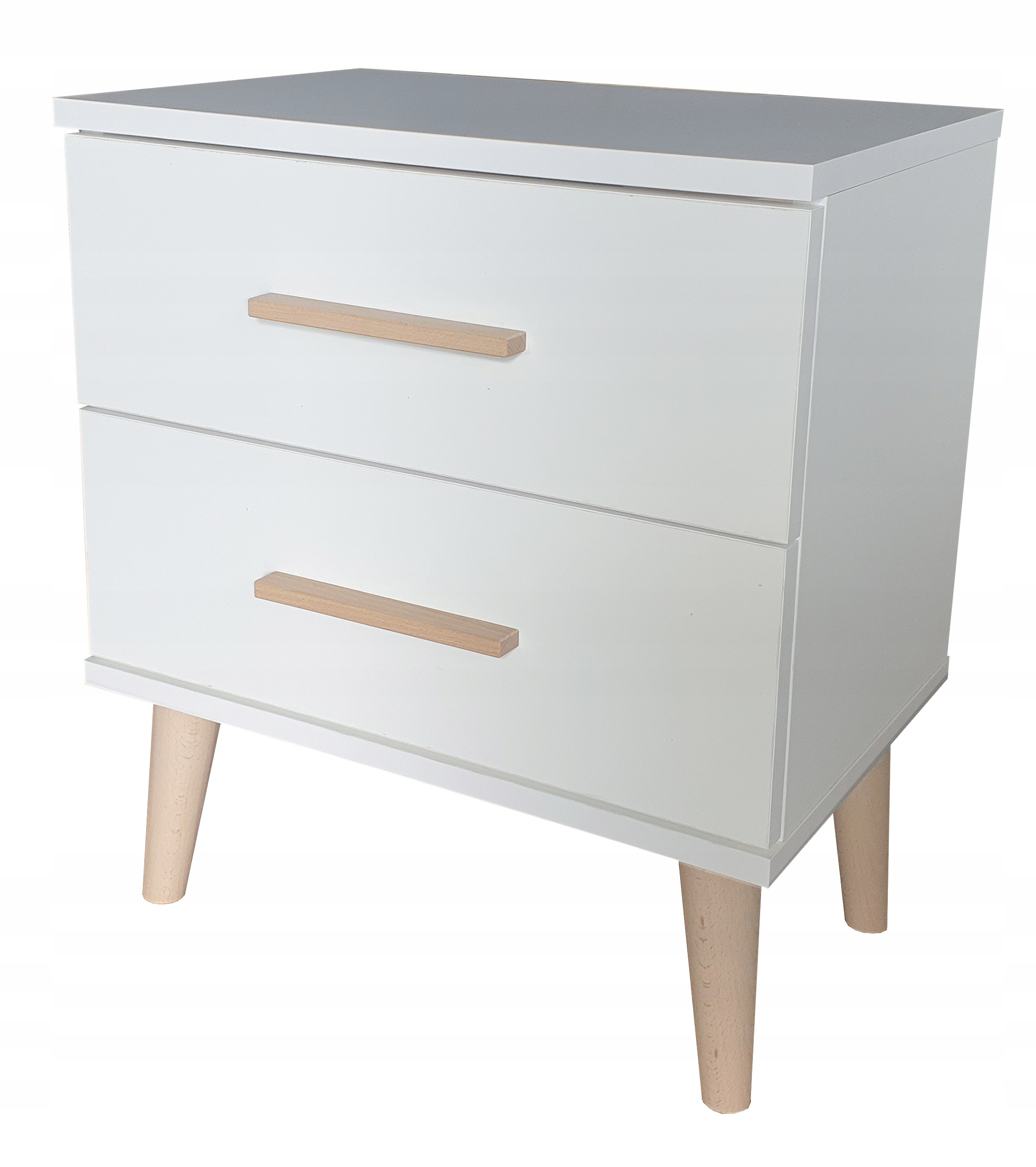 Тумбочка прикроватная, 2 ящика, скандинавский стиль, белый, деревянные элементы