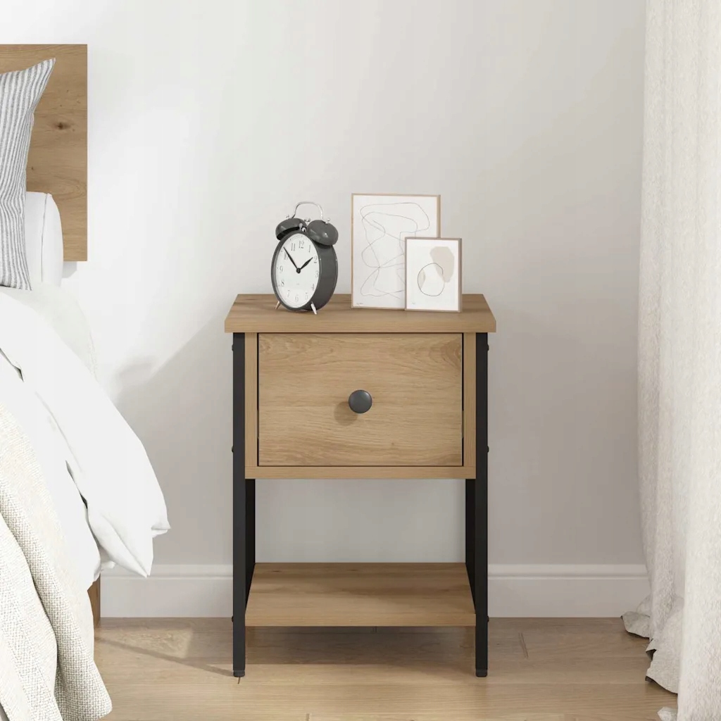 - Конструкция из искусственной древесины: Прочная и элегантная прикроватная тумбочка. Являясь основным элементом в спальне, он имеет современную матовую поверхность, обеспечивающую долговечность и эстетичный внешний вид, устойчивый к повседневному использованию.