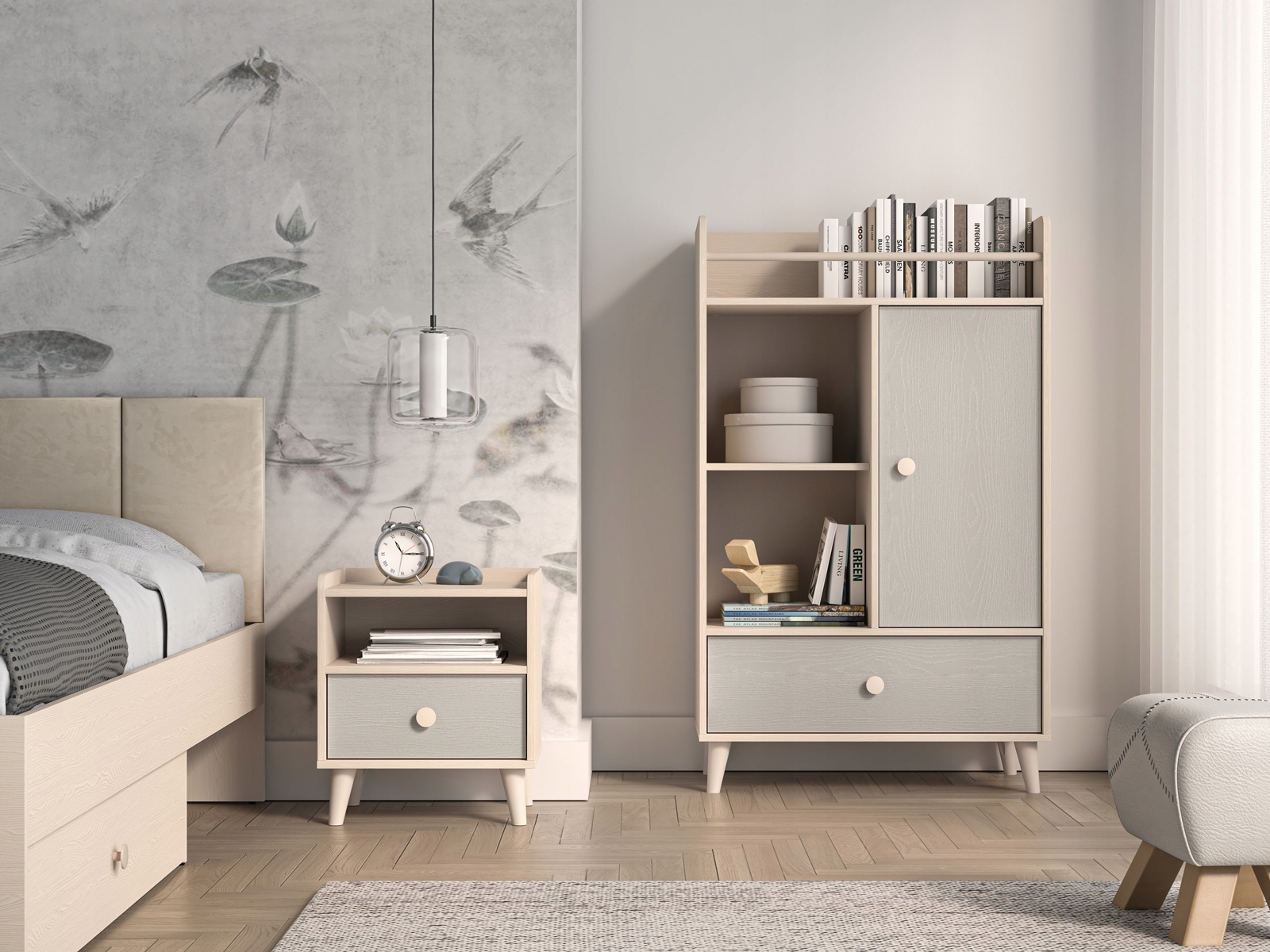 Представленная детская тумбочка из коллекции ML Meble Mevel – подходящий выбор как для мальчиков, так и для девочек. Его универсальность обеспечивается вневременными пастельными тонами, то есть сочетанием декора Desert Sand и Grey Palladium. Эти цвета добавляют уюта и тепла обустройству спальни, одновременно освещая ее и придавая элегантный вид. Серо-бежевый шкаф также легко сочетается с другими элементами дизайна интерьера, текстилем и украшениями в детской комнате.