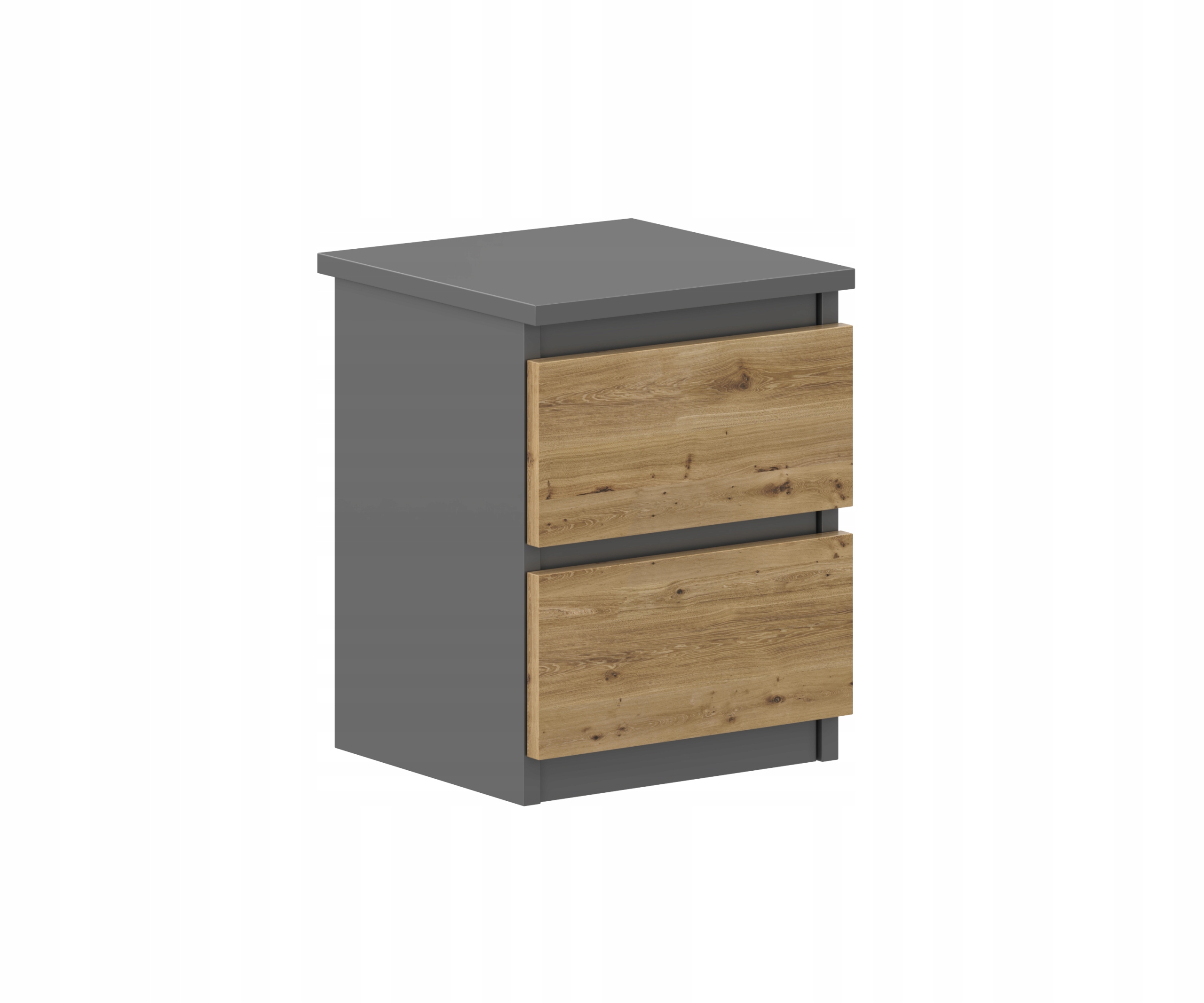 ТУМБА ПРИЛІЖНА СТОЛИК ДЛЯ СПАЛЬНІ, ВІТАЛЬНОЇ, 2 ЯЩИКИ, ГРАФІТ, ДУБ ВОТАН