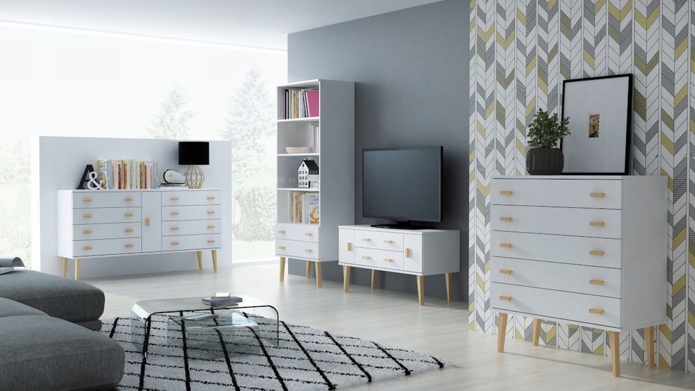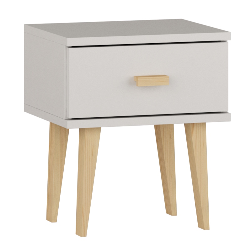 Ящики выдвигаются на прочных металлических направляющих. Накастлик выполнен в современном скандинавском стиле. На основе массивных сосновых ножек.