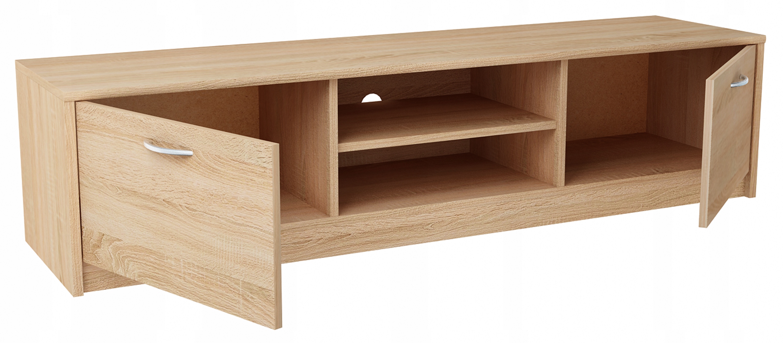 Телевизионный стол 2DC шириной 160 см состоит из двух шкафов по бокам и одной ниши посередине, разделенной полкой, положение которой можно регулировать.