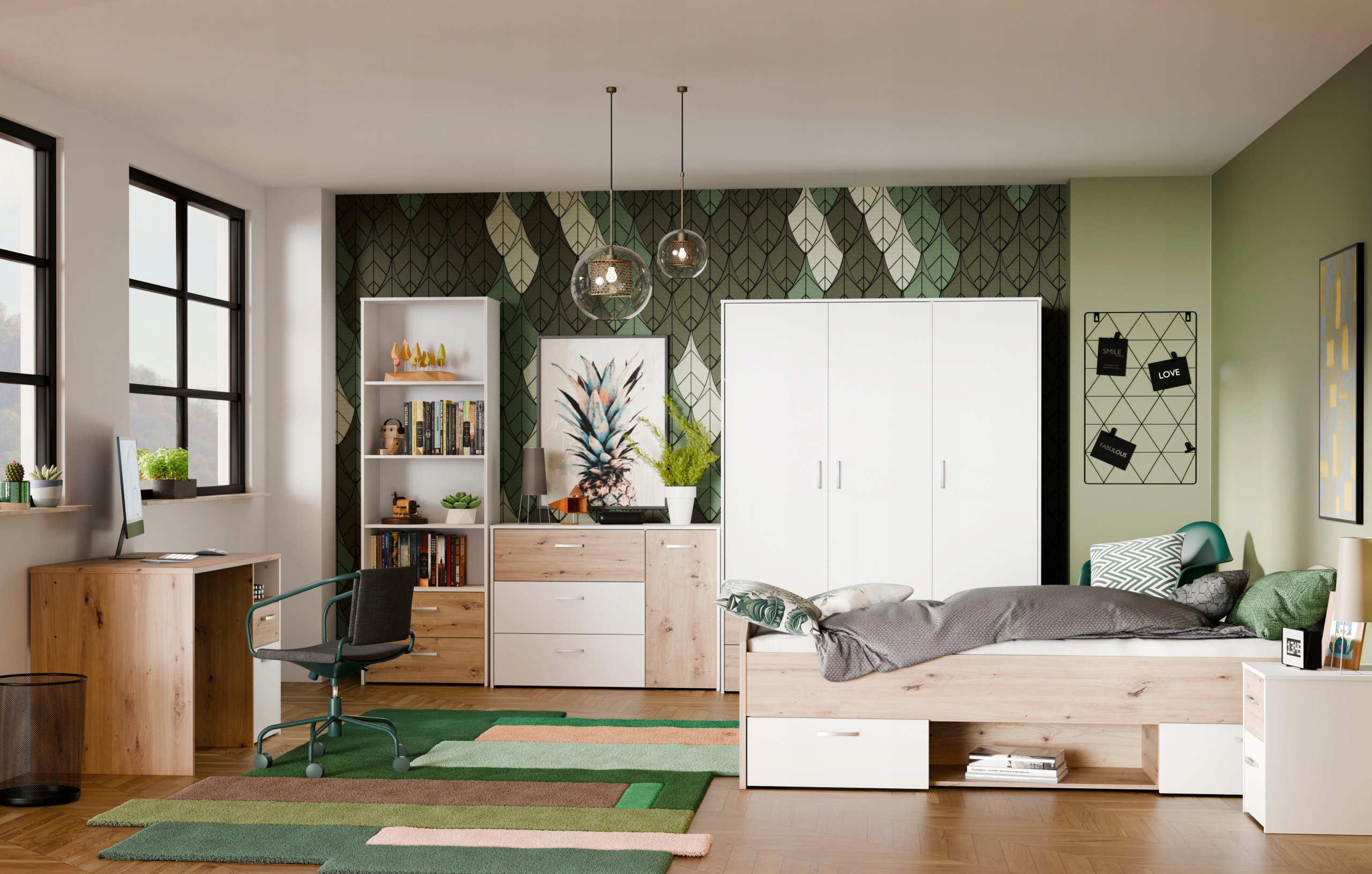 Тумба в підліткову кімнату, дуб білий та кустарний, дві шухляди