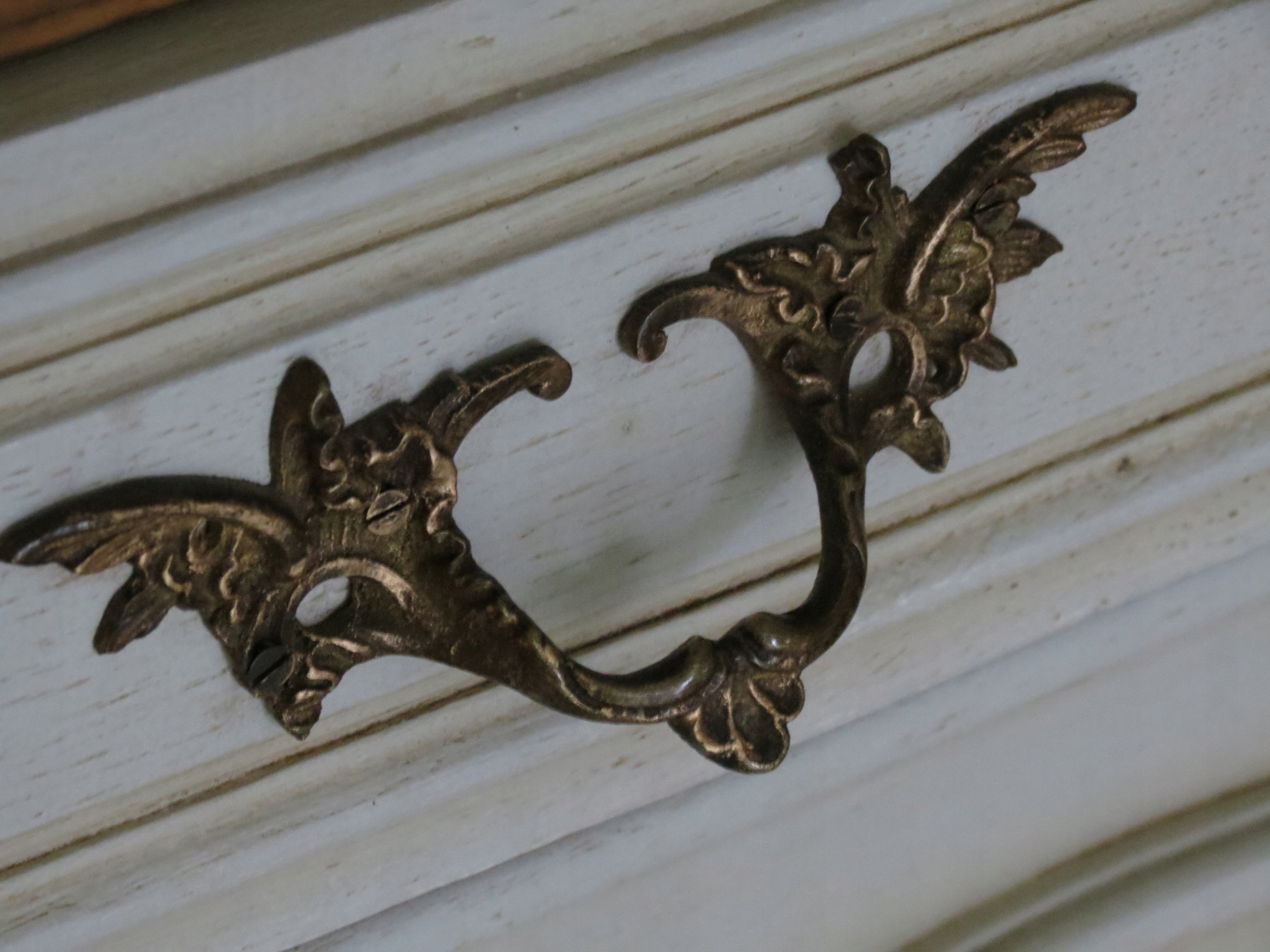 Вся вещь была защищена матовым лаком, который придал комоду красивый сатиновый оттенок, а также