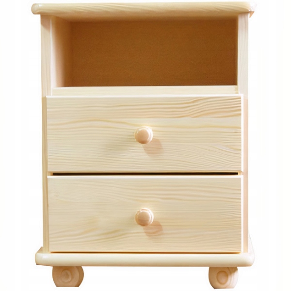 Деревянная прикроватная тумбочка полностью изготовлена из массива массивной сосны. Из ДВП выполнены только задняя стенка и днища ящиков.