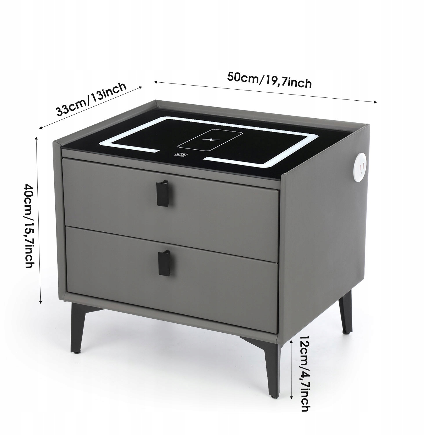 ПРИМОЧНЫЙ ШКАФ СТОЛИК ДЛЯ СПАЛЬНИ С 2 ЯЩИКАМИ И ФУНКЦИЕЙ ЗАРЯДКИ - СЕРЫЙ