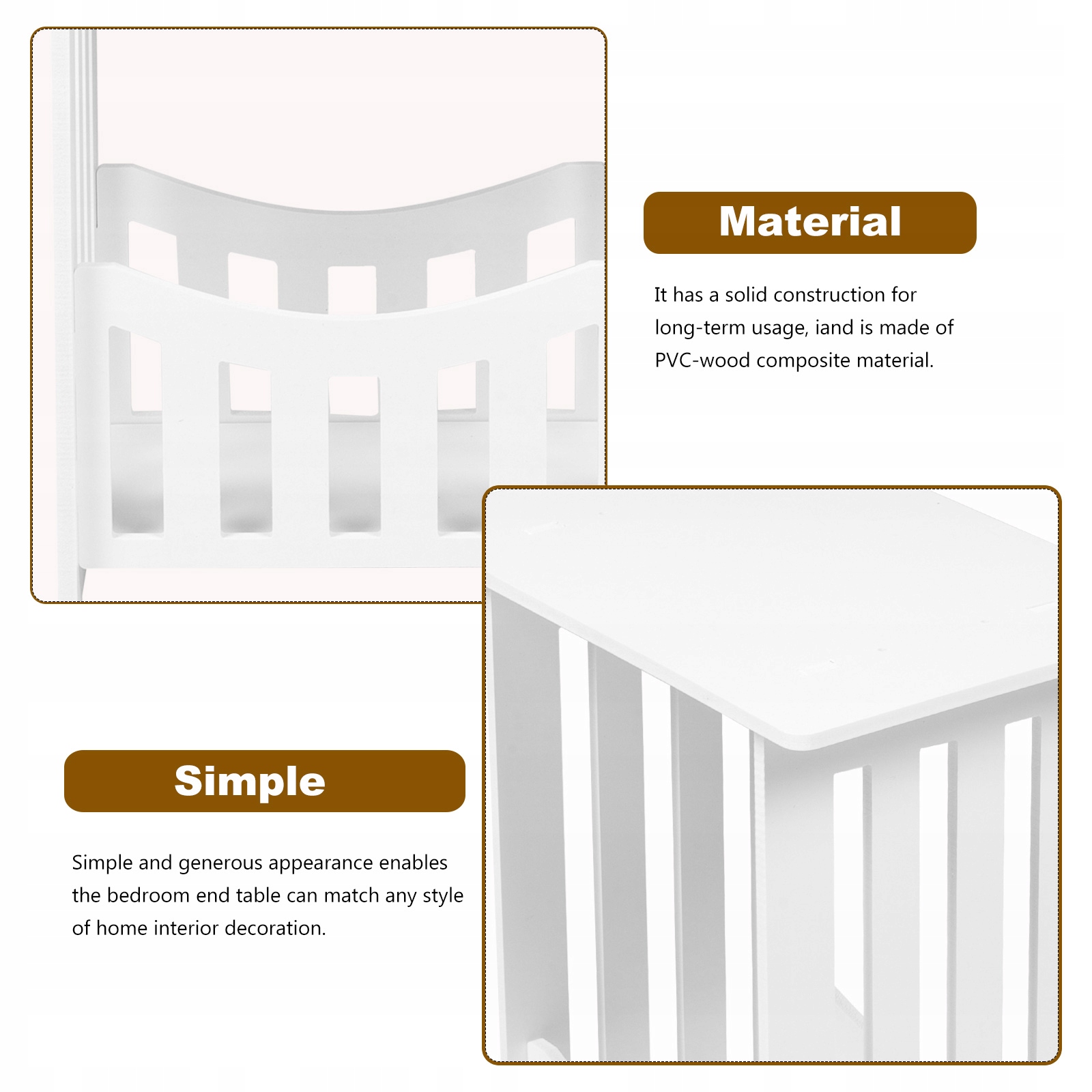 ✅В отличие от другой прикроватной тумбочки, которая более практична, эта прикроватная тумбочка уникальна. Он имеет прочную конструкцию, рассчитанную на длительное использование, привлекательный и изготовлен из композита ПВХ-дерева. Его можно использовать во многих случаях в качестве косметического столика, чайного столика или края дивана в гостиной.