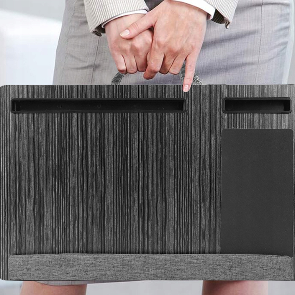Благодаря встроенной ручке наколенник можно легко переносить и брать с собой куда угодно. Путешествуете ли вы, работаете в кафе или просто нуждаетесь в удобном месте для работы на диване, наша подставка для ноутбука — идеальное решение.