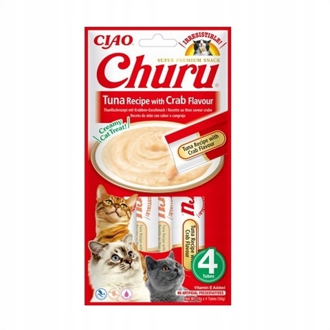 Здесь вы найдете беззерновое лакомство для вашей кошки Inaba Cat Churu Тунец с крабом 4х14 г (Рецепт тунца Чао Чуру со вкусом краба)