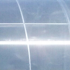 Толщина поликарбоната 6 мм 0,9 кг/м² (можно выбрать и 4 мм 0,55 кг/м²) б>), срок службы от 8 до 10 лет в зависимости от погодных условий, не требует демонтажа в зимний период. Устойчивость к лучам UV4. Крепится к каркасу с нахлестом 5 см (остальные 5 см выступают над верхушками тоннеля для закрытия вертикальных пластин поликарбоната спереди и сзади) с помощью саморезов.