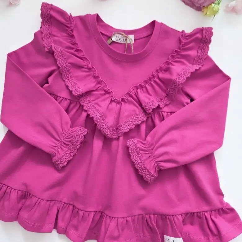 Хлопковая туника V с красивым осенним джинсовым цветом. V -образный оборки добавляет очарование, которое дополнительно заканчивается небольшим кружевом. Он также присутствует в рукавах, которые закончены резиновой лентой. Идеально подходит для стиля с узорчатыми леггинсами, но также и в том же цвете, которые также доступны в нашем магазине. Удобно, это не ограничивает движения даже самых активных детей. У этого есть слегка расклешенная яма, которая добавляет ее воздушного и девиц. Это отлично подходит для особых случаев, а также для детского сада или детского сада. Доступно в нескольких размерах и цветах.