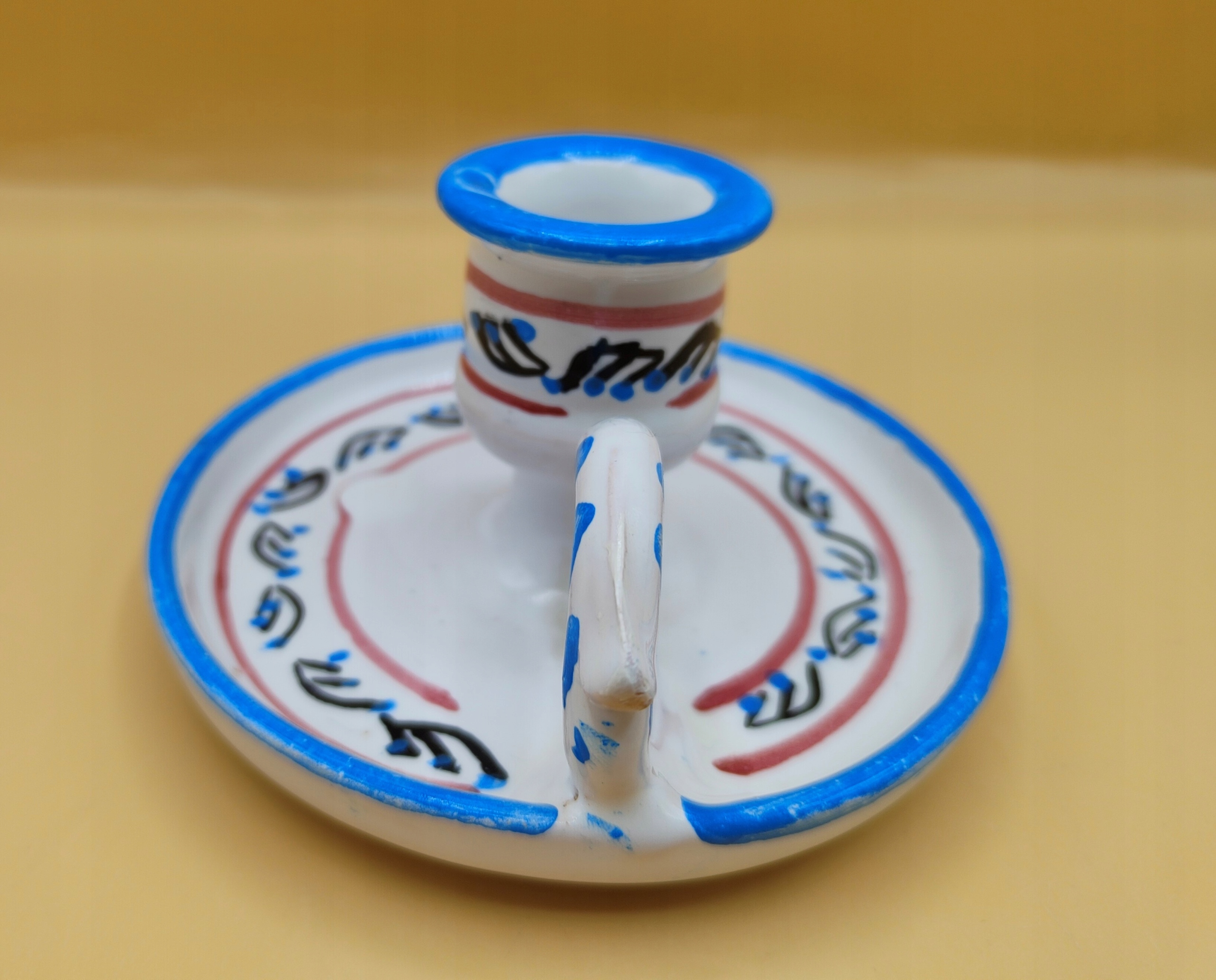 Керамика, ручная работа и роспись. Диаметр 11 см, высота 6 см, отверстие для свечи 2,2 см. Очень красивая, коллекционная и полезная вещь. РЕКОМЕНДУЮ.