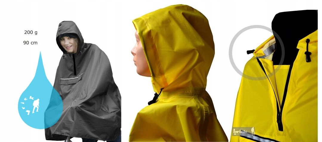 Капюшон регулируется резиновым шнуром со стопором и пластиковым наконечником. Накидка застегивается на ВОДОНЕПРОНИЦАЕМУЮ молнию.
