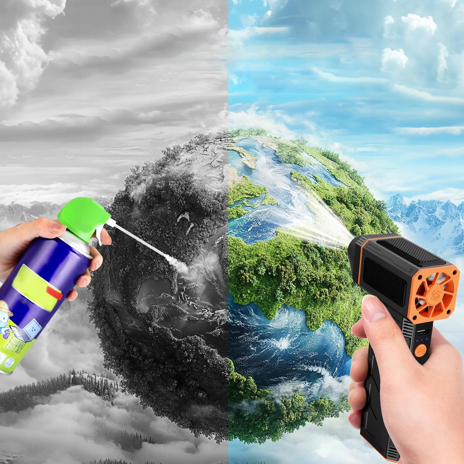 - Этот пылеуловитель сжатого воздуха размером всего с сотовый телефон, легкий и портативный, идеально подходит для использования на открытом воздухе. Используйте его, чтобы охладиться после тренировки, разжечь огонь во время пикника, почистить листья и паутину или сдуть воду при мытье автомобиля.