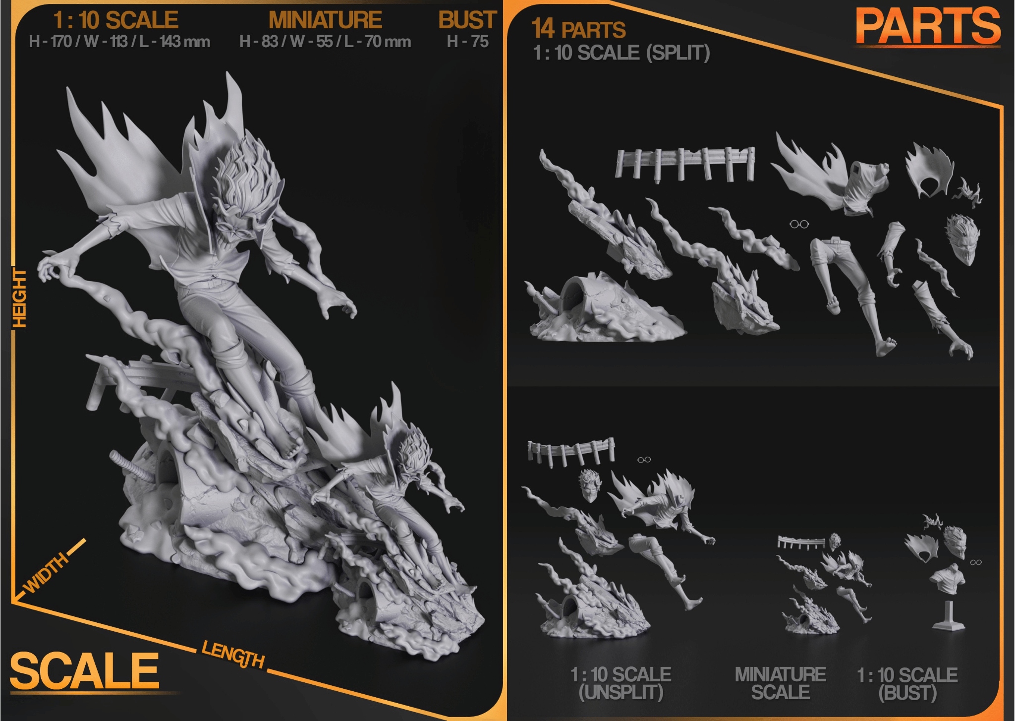 - Материал : фигурница была напечатана в 3D SLA с самой высокой точностью, которая гарантирует высокое качество деталей. Он напечатан с точностью 50 микрометров.