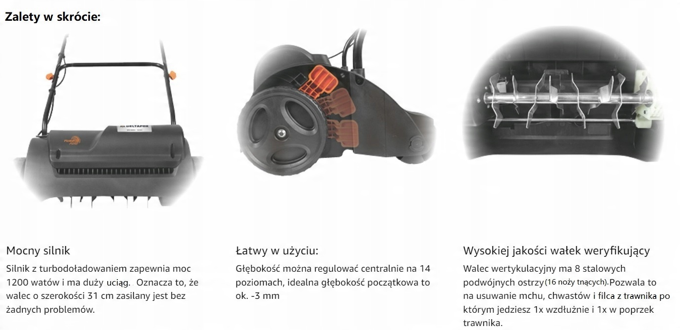 deltafox dg-esc 1231 1200 [w]/ 2400* w ew h1> Электрическая универсатилья с турбопроводным двигателем, корзина 30 [l], рабочая ширина 31 [см], 14-градусная регулировка глубины, ролик с двойными ножами в съемочной площадке. Grizzly