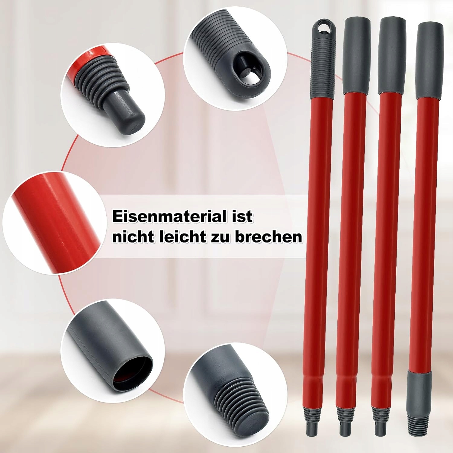 держатель швабры имеет отдельную ручку с 4 частями с немецкими резьбами. Просто потяните ручку швабры на раздел, установите длину по мере необходимости, и вы можете начать чистку.