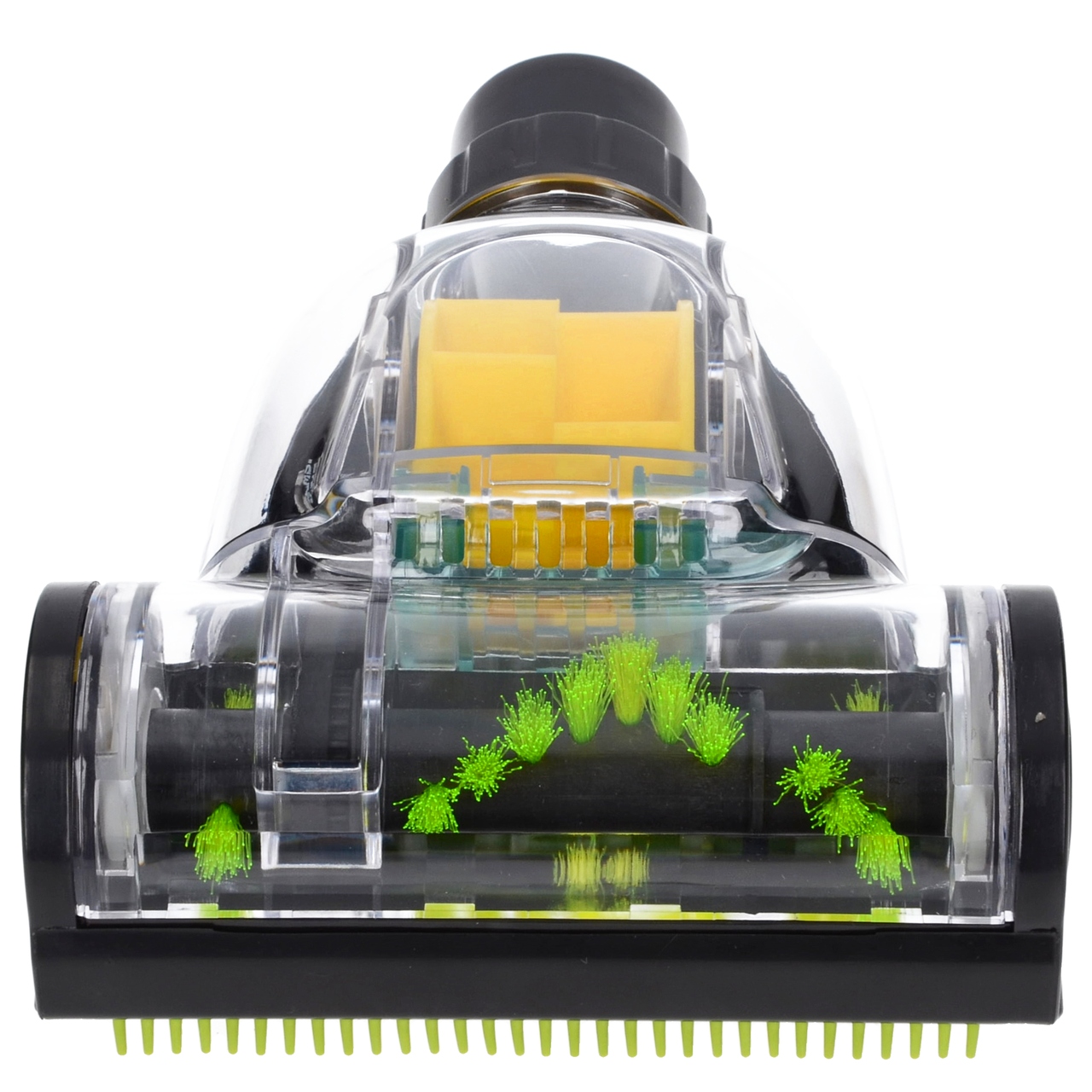 Новая турбощетка, положительно влияющая намощность всасывания пылесоса. Щетку можно открывать и чистить, а зубцы на ее конце позволяют добраться до труднодоступных мест.