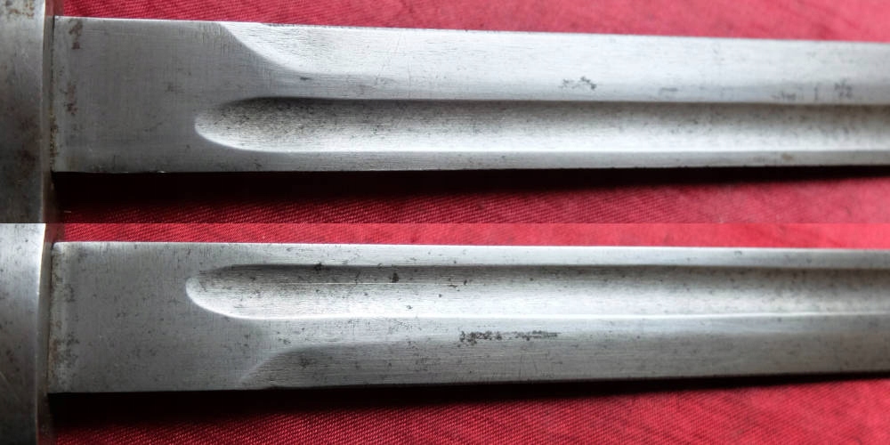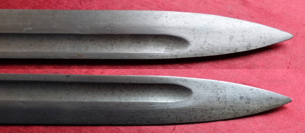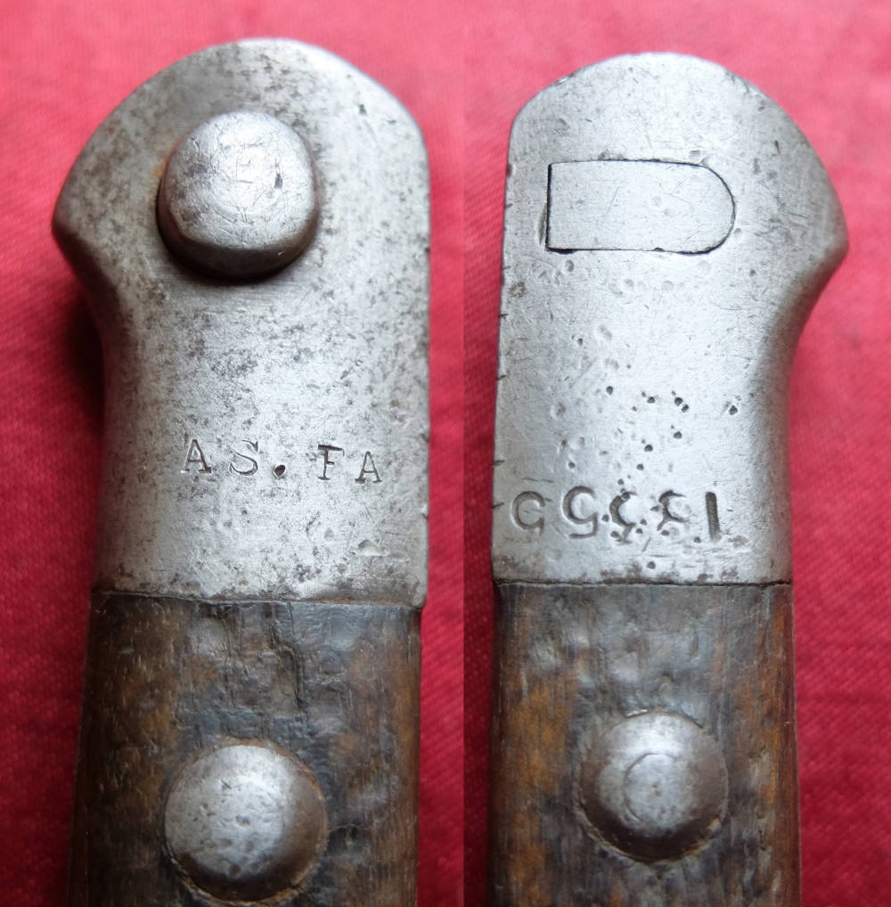 Экземпляр, видимый на фотографиях, очень хорошо сохранился. Лезвие не заточено и имеет деликатную заточку, которая практически незаметна. Накладки на ручки деревянные и оригинальные. Байонетный замок рабочий. На головке выбита маркировка AS.FA. (Аскари Фабрика, оружейный завод, основан в 1929 году). На другой стороне выбит немного неясный номер.