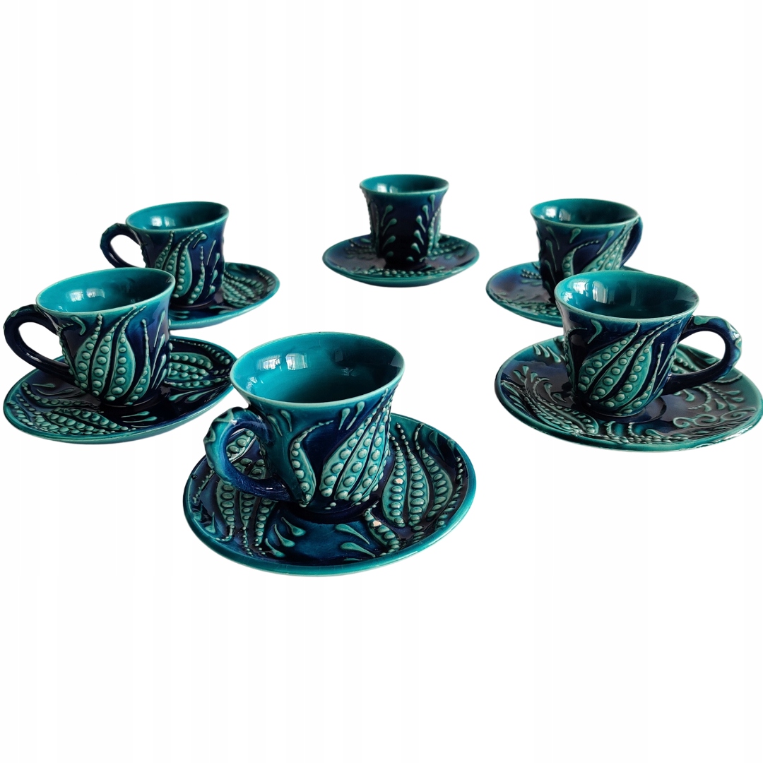 ▶️ 1x Набор керамических стаканов с турецкой бирюзой из Турции (всего набор состоит из 12 предметов)