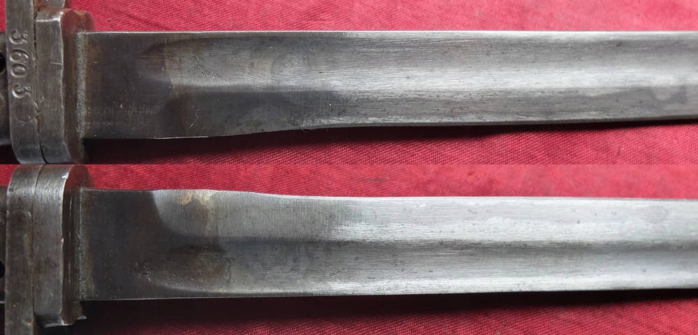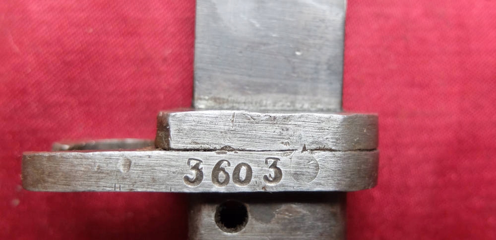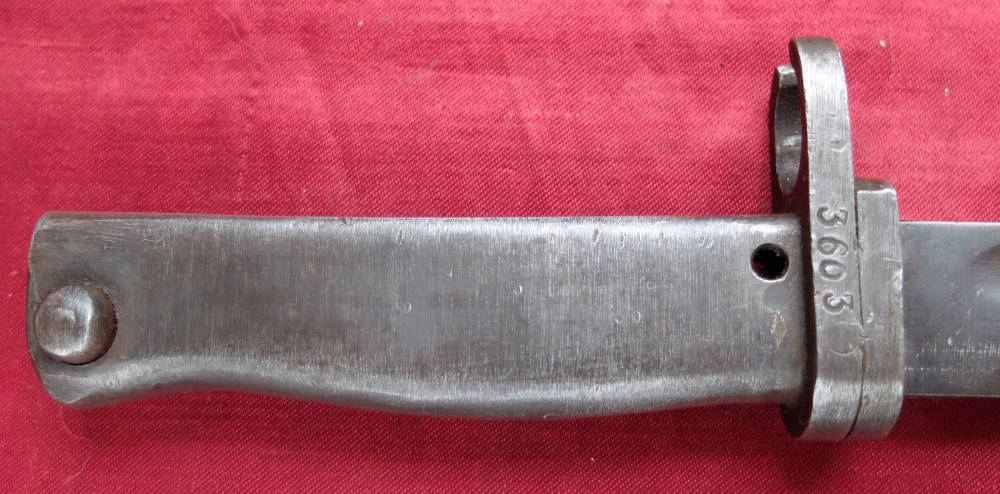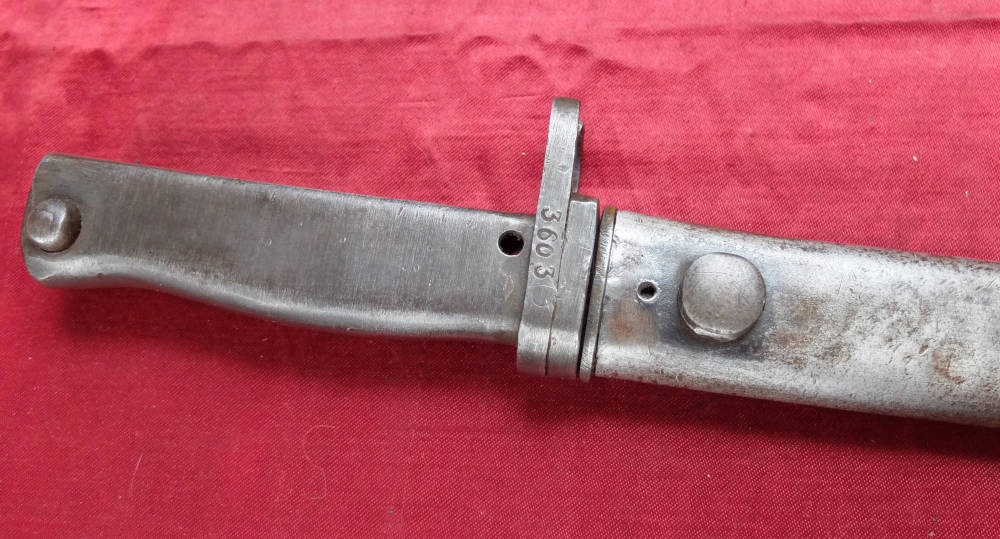 Экземпляр, видимый на фотографиях, прекрасно сохранился. Лезвие заточено. На поперечине выбит номер 3603. Байонетный замок рабочий. Штык полностью металлический.