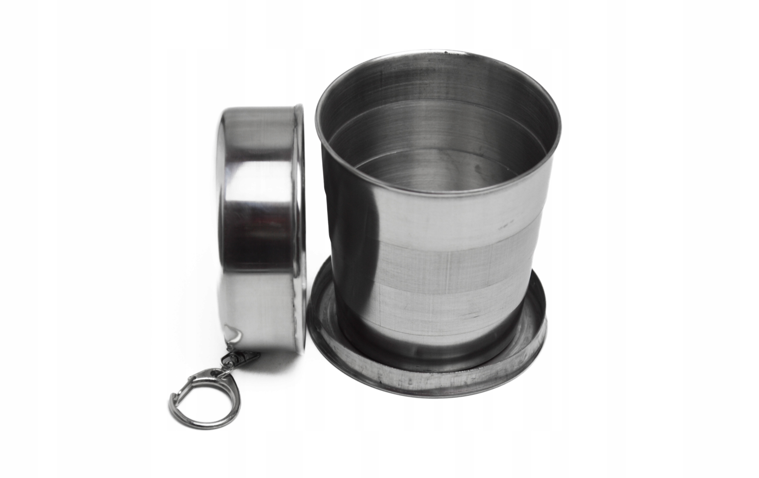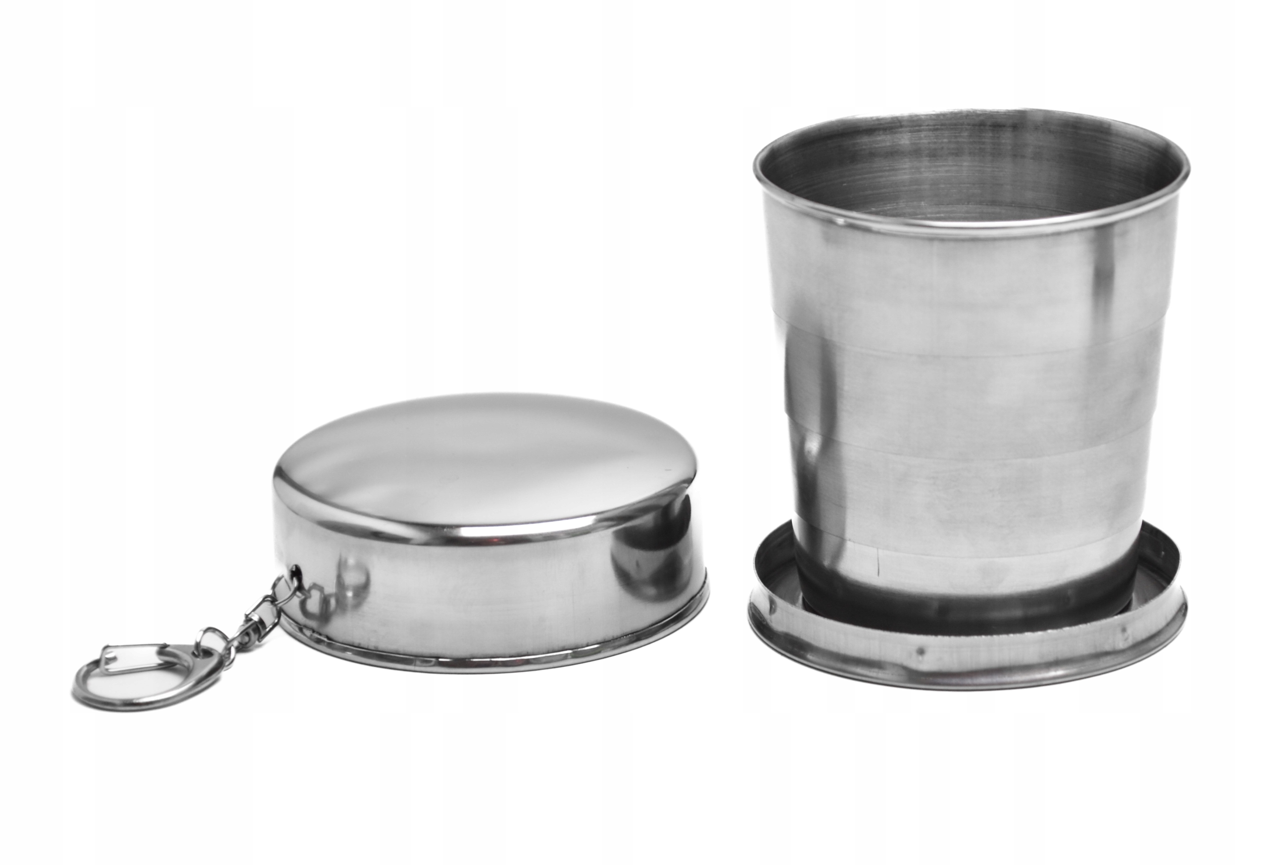 - Очень большой, складной, туристический, дорожный стакан из цельного металла. Держатель для подвешивания, например, на шнурке или на ключах. Удобный и практичный. Он поместится в кармане и всегда будет с собой.