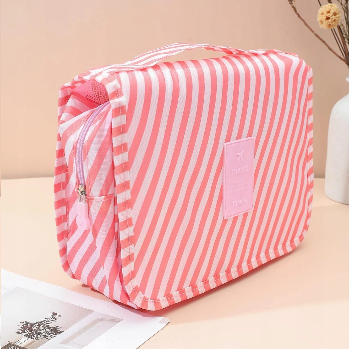 Жіноча дорожня косметичка, підвісна, рожева, в смужку, органайзер літак