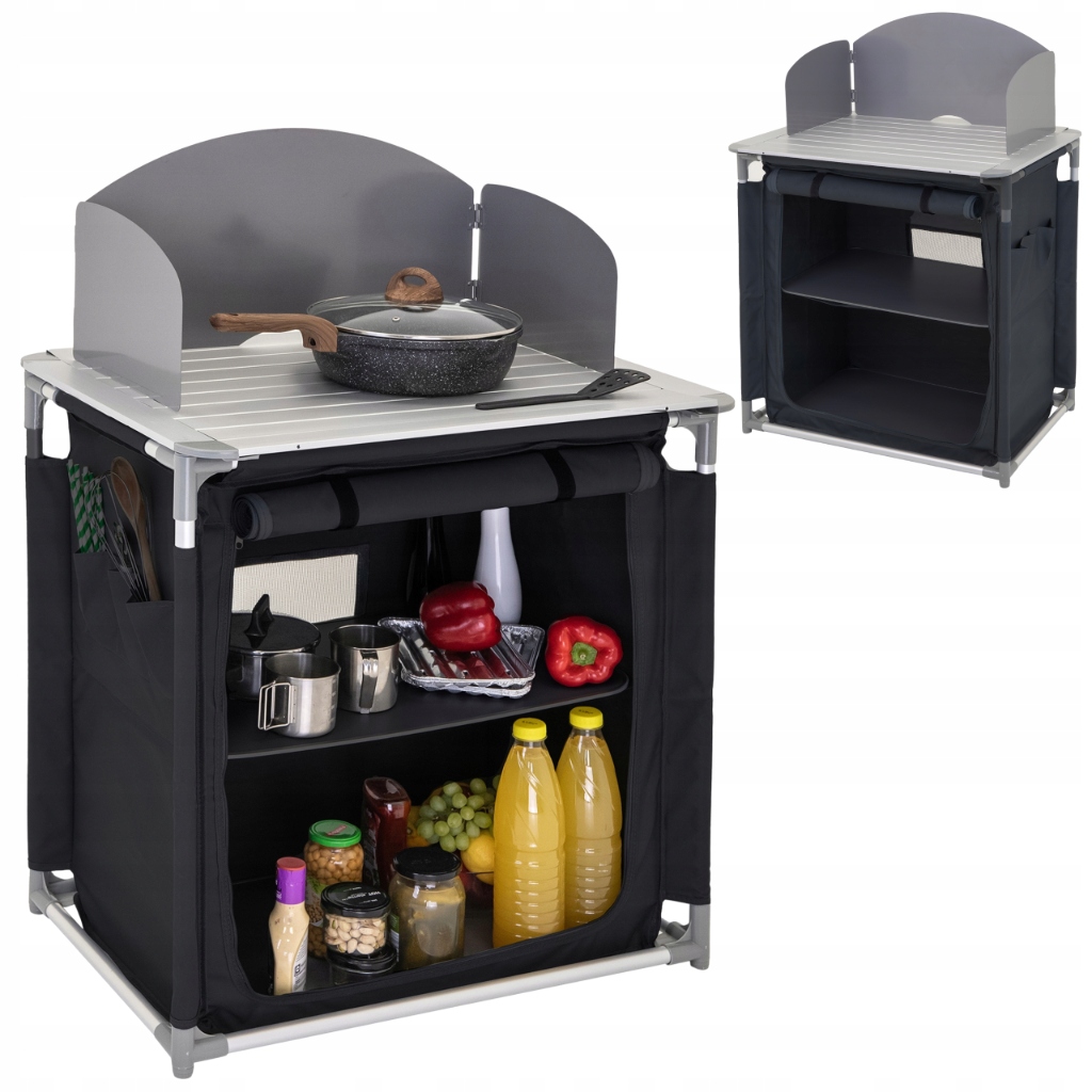 ➡️Большая вместимость – Туристическая кухня имеет металлическую столешницу, позволяющую разместить плиту. В комплект входит подвесной шкаф с двумя усиленными полками для хранения продуктов, посуды и других необходимых принадлежностей.