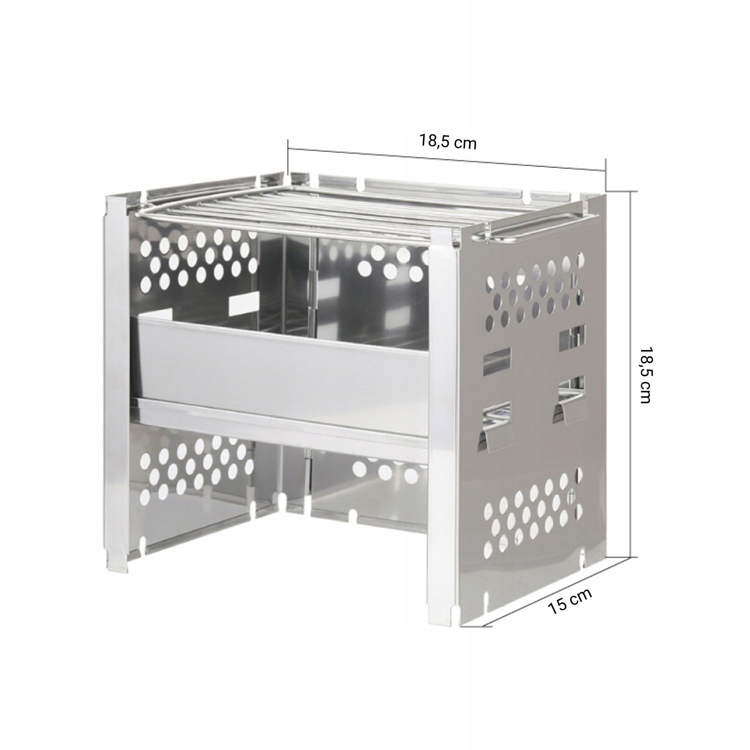 - размеры печи в разложенном виде: 18,5 × 18,5 × 15 см